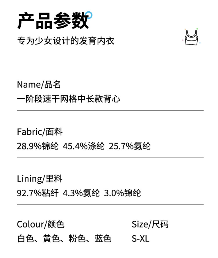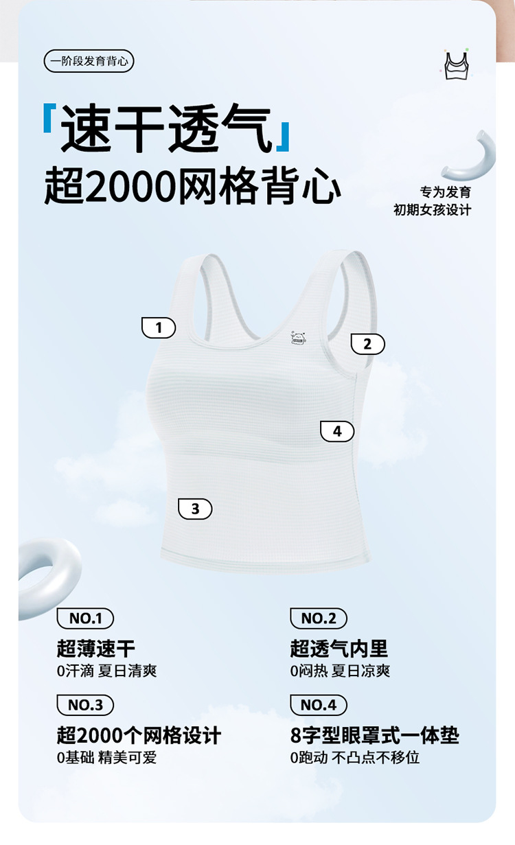 8 ~ 12 세의 소녀 조끼 원활한 분배면 패드 방지 범프 초박형 빠른 건조 속옷