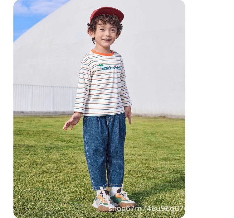 브랜드 클리어런스 남성용 긴팔 티셔츠 2024 새 봄 옷 어린이 아기 대비 색상 면화 셔츠 서양식스토어 가기