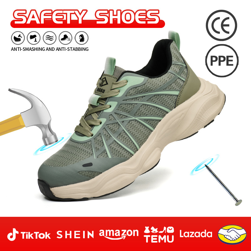 국경 간 안전화, 남성용 노동 보호 신발, 경량, 충격 방지, 펑크 방지, 내마모성, 여름 플라이 짠 통기성 및 탈취 작업화