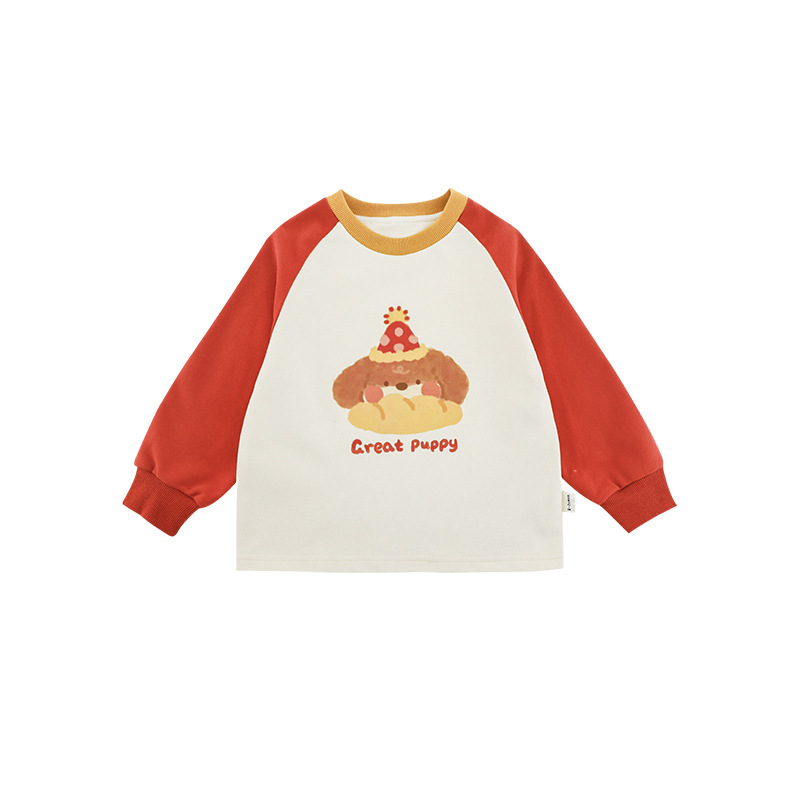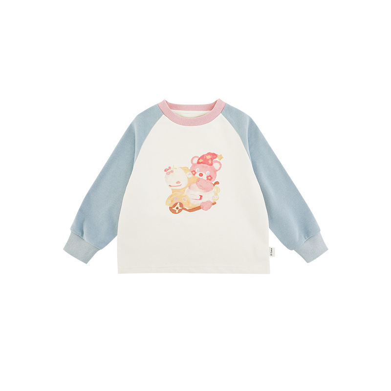 Qiu Duomeng 소녀의 만화 인쇄 Raglan 슬리브 스웨트 셔츠 2024 봄과 가을 새로운 어린이 한국 스타일 귀여운 루즈 탑스토어 가기