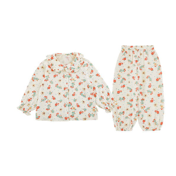 Qiu Duo Meng 여아 레이스 칼라 홈웨어 세트 2025 봄 가을 신상 아동 한국 스타일 만화 귀여운 잠옷 트렌드