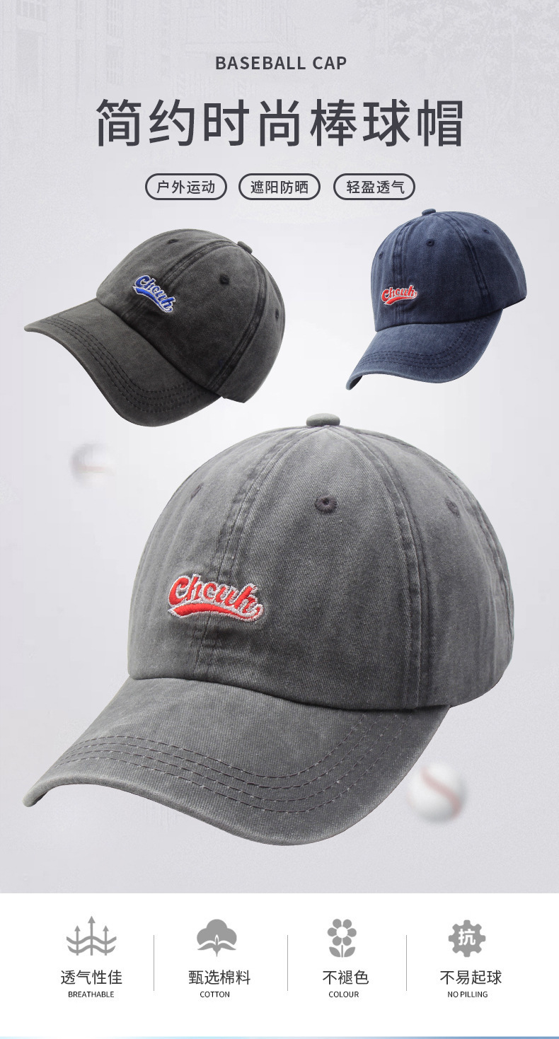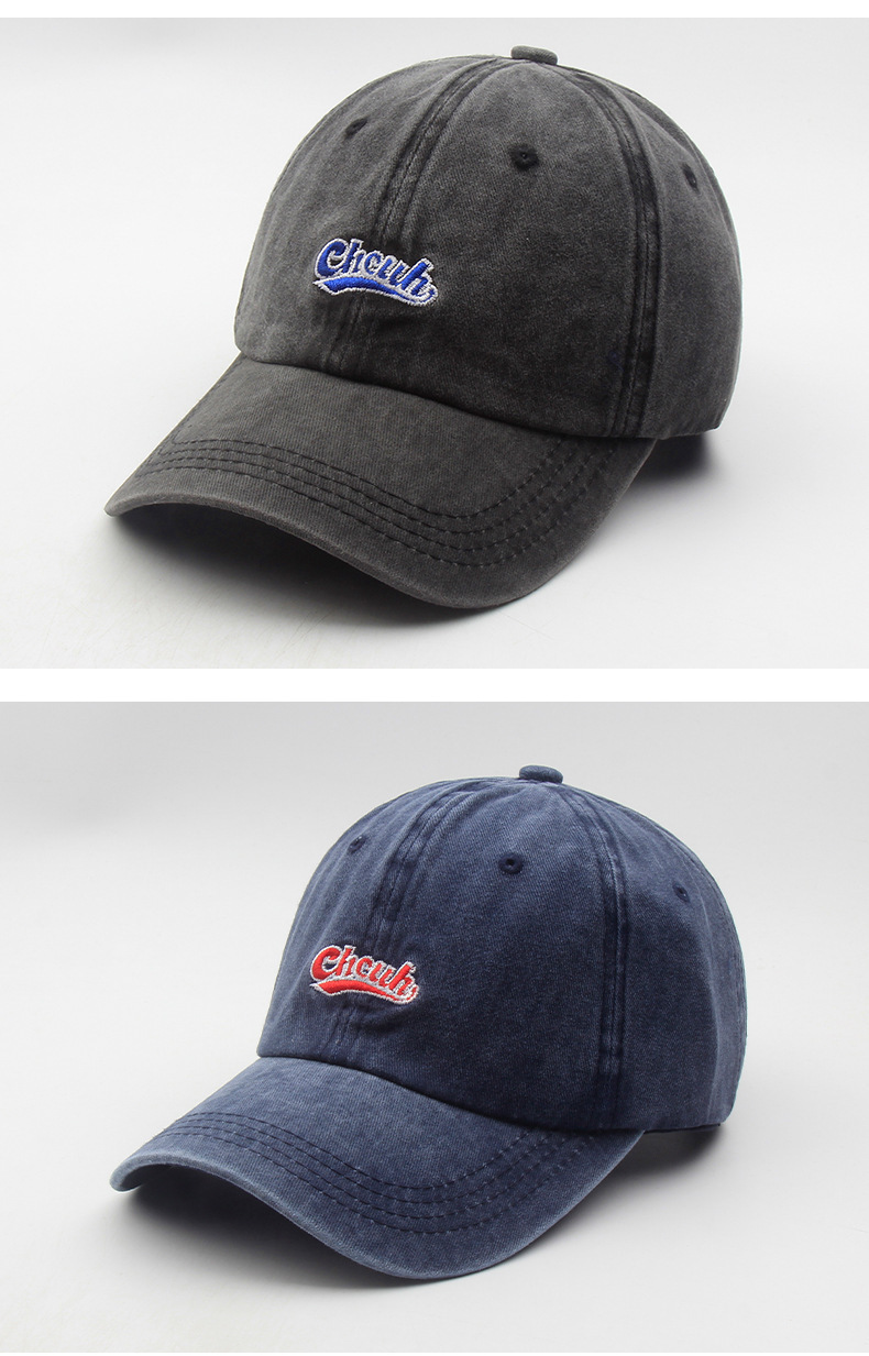 Yiyi 한국식 새로운 세척 데님 빈티지 자수 피크 캡 여자 여름 야외 올 매치 야구 모자 남자 태양 방지