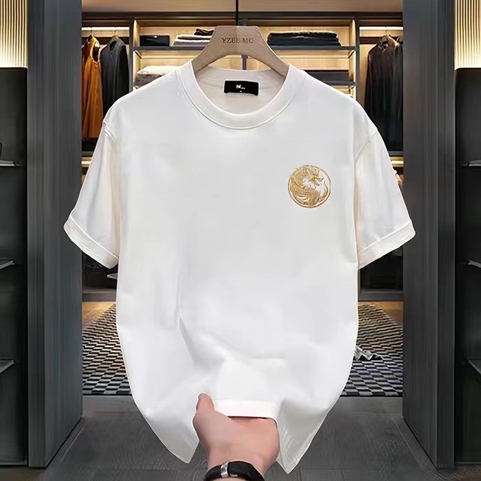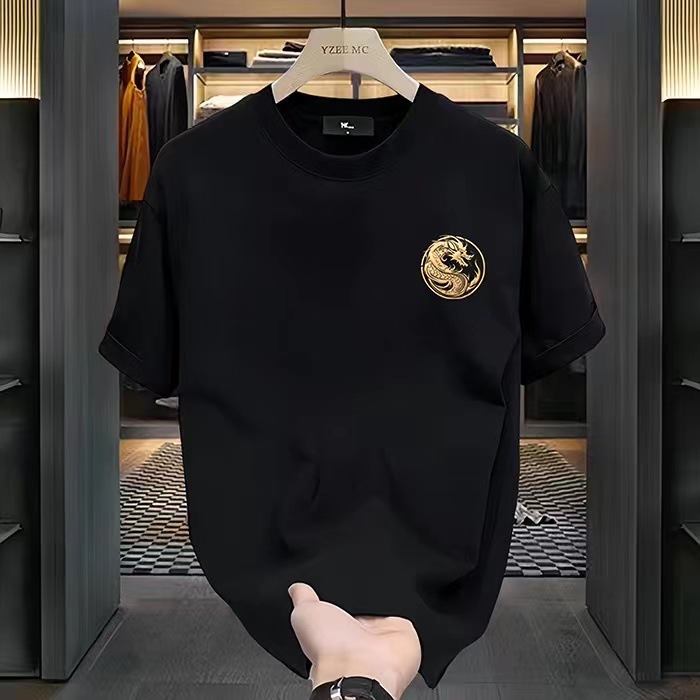 하이 퀄리티 면화 남성 디자인 프린트 수도꼭지 티셔츠 중국 스타일 느슨한 캐주얼 라운드 칼라 패션 짧은 소매스토어 가기