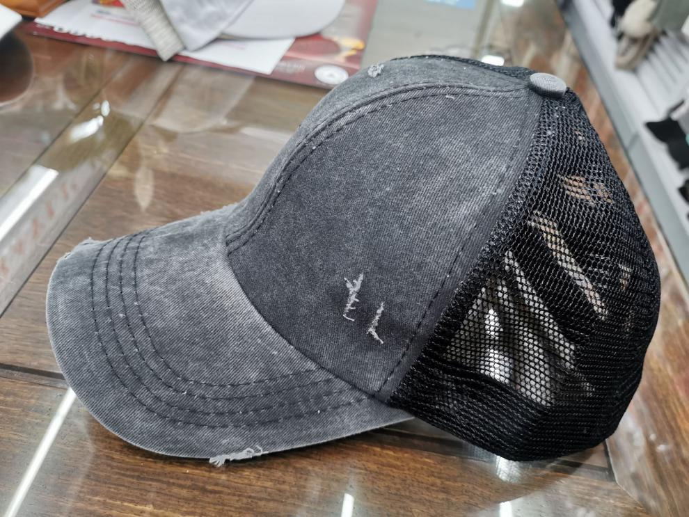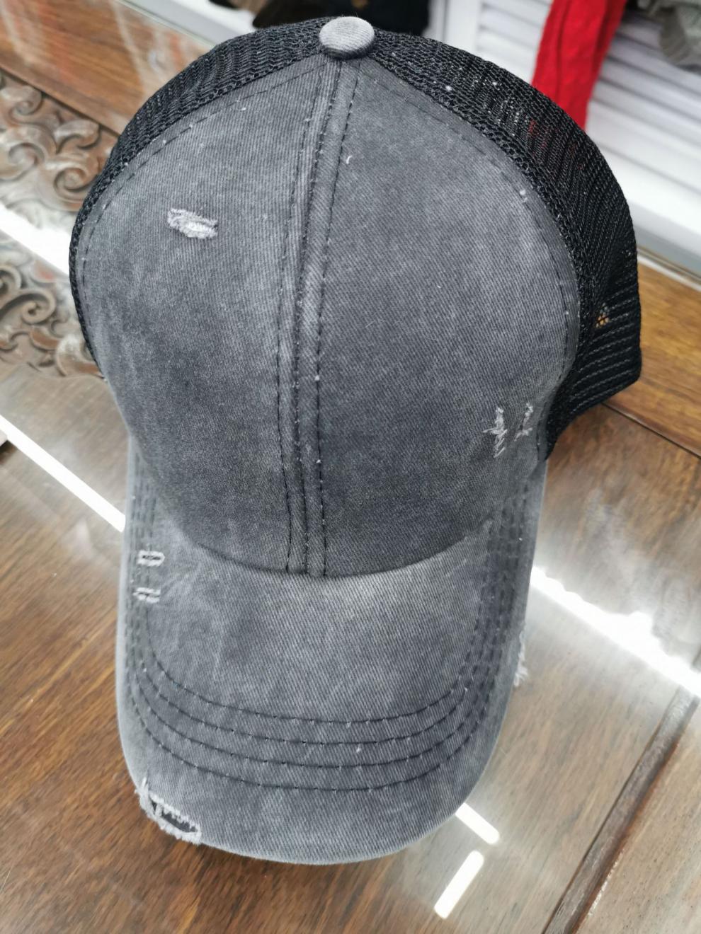 Yiyi 국경 도매 2020 새로운 씻은 면화 찢어진 야구 모자 Ponytail 모자 정점 모자스토어 가기