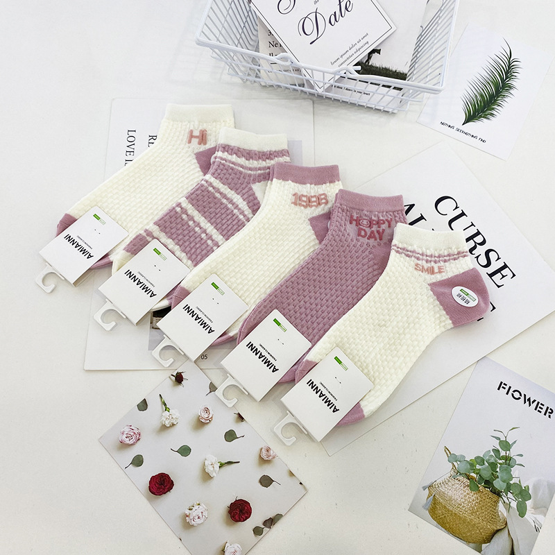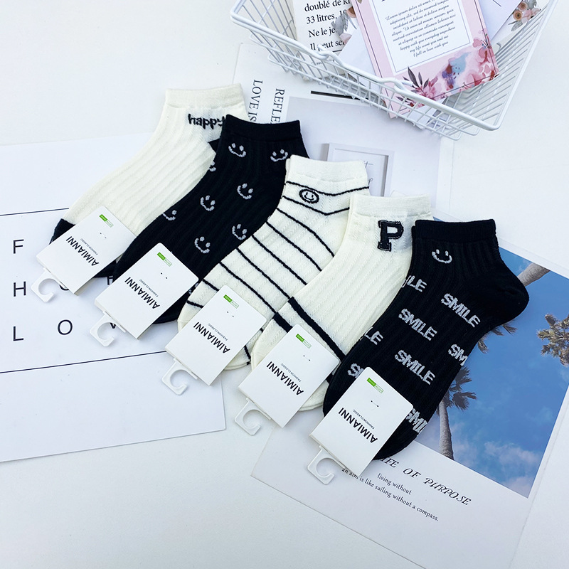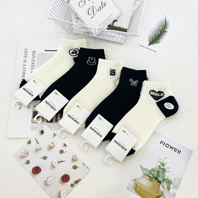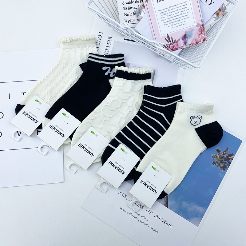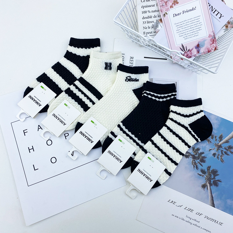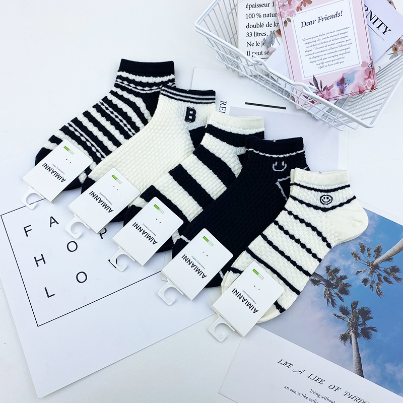 새로운 양말 여성 봄과 여름 흑백 로우 컷 양말 안티 짠 버블 양말 짧은 로우 탑 발목 양말 공장 도매스토어 가기