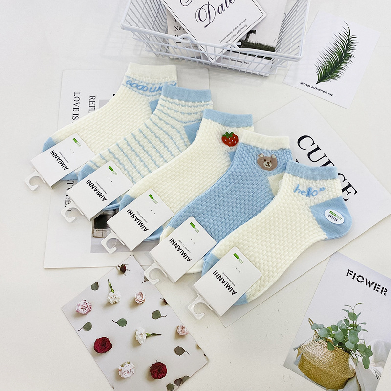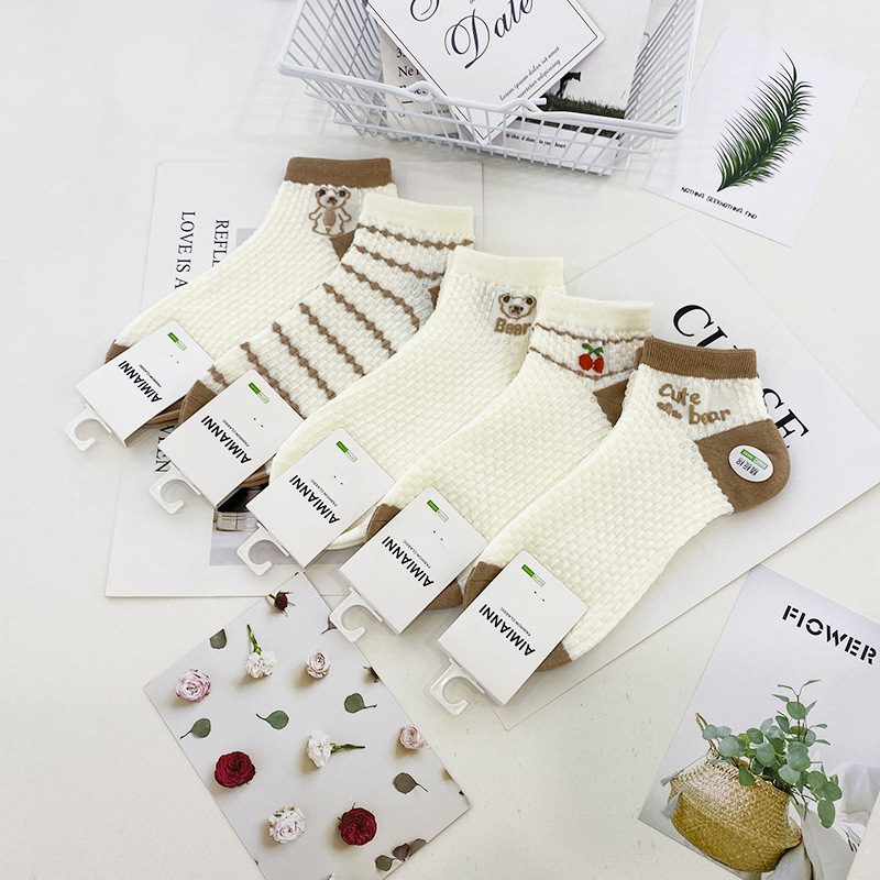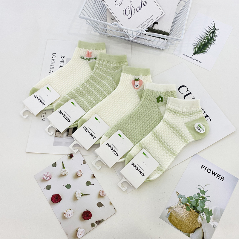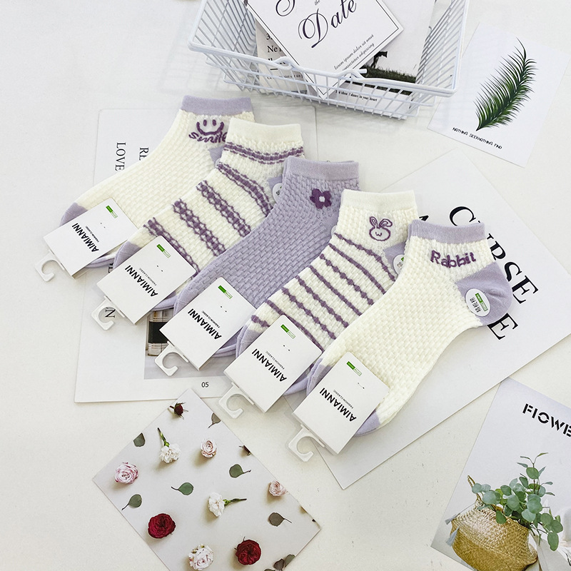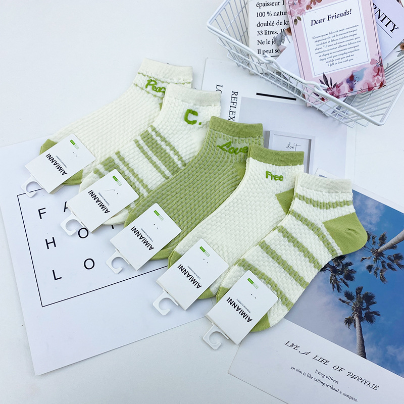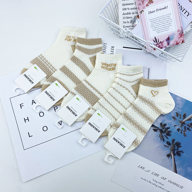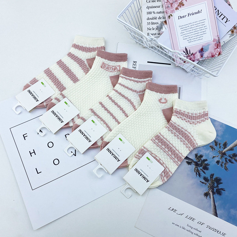 새로운 양말 여성 봄과 여름 흑백 로우 컷 양말 안티 짠 버블 양말 짧은 로우 탑 발목 양말 공장 도매스토어 가기