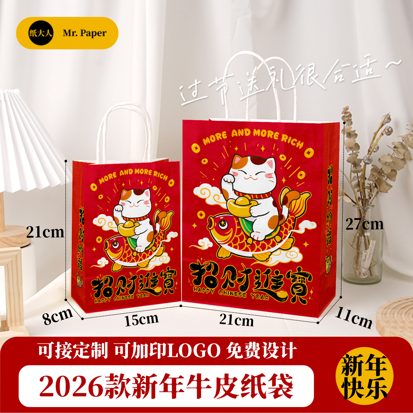 제조업체 크라프트 종이 핸드백 밀크티 베이커리 테이크아웃 포장 가방 크리스마스 새해 선물 쇼핑 포장 가방 맞춤 제작