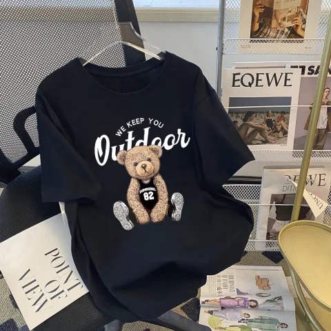 블랙 반팔 티셔츠 여성 봄과 여름 2024 새로운 미국 스타일 레트로 니치 디자인 퓨어 코튼 올매치 반소매 탑스토어 가기