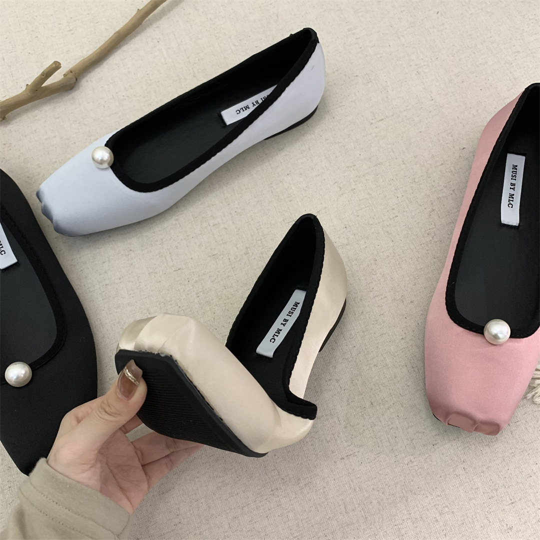 봄과 가을 2024 새로운 온라인 인기 진주 플랫 신발 여성 신발 부드러운 조커 슬립 온 통근 게으름