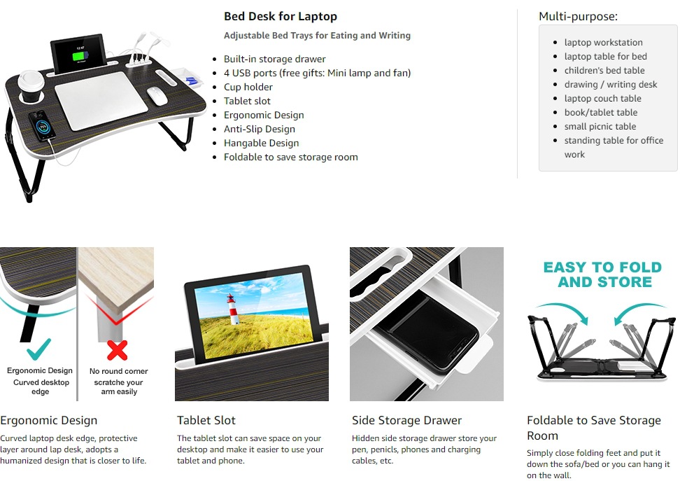 USB 침대 컴퓨터 책상 노트북 충전 접이식 테이블 침실 책상 학생 기숙사 연구 작은 테이블스토어 가기