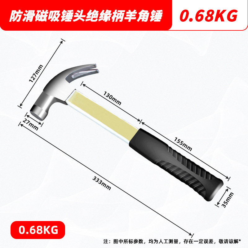 • 33cm 비 슬립 자기 라운드 해머 헤드 절연 핸들 0.68kg