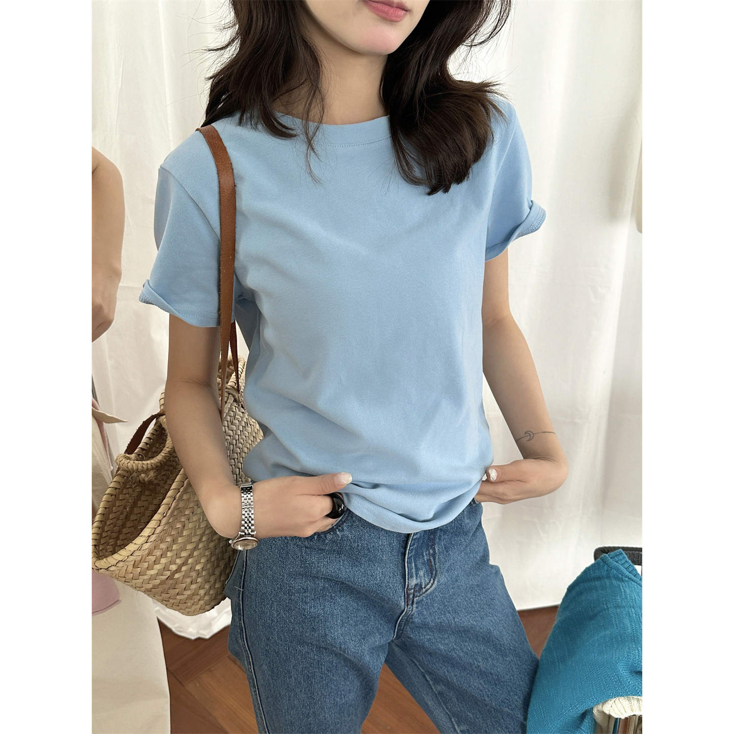 레몬 전체 자기 유지 봄과 여름 새로운 흰색 반팔 티셔츠 여성용 어깨 내부 슬림베이스 셔츠 탑스토어 가기