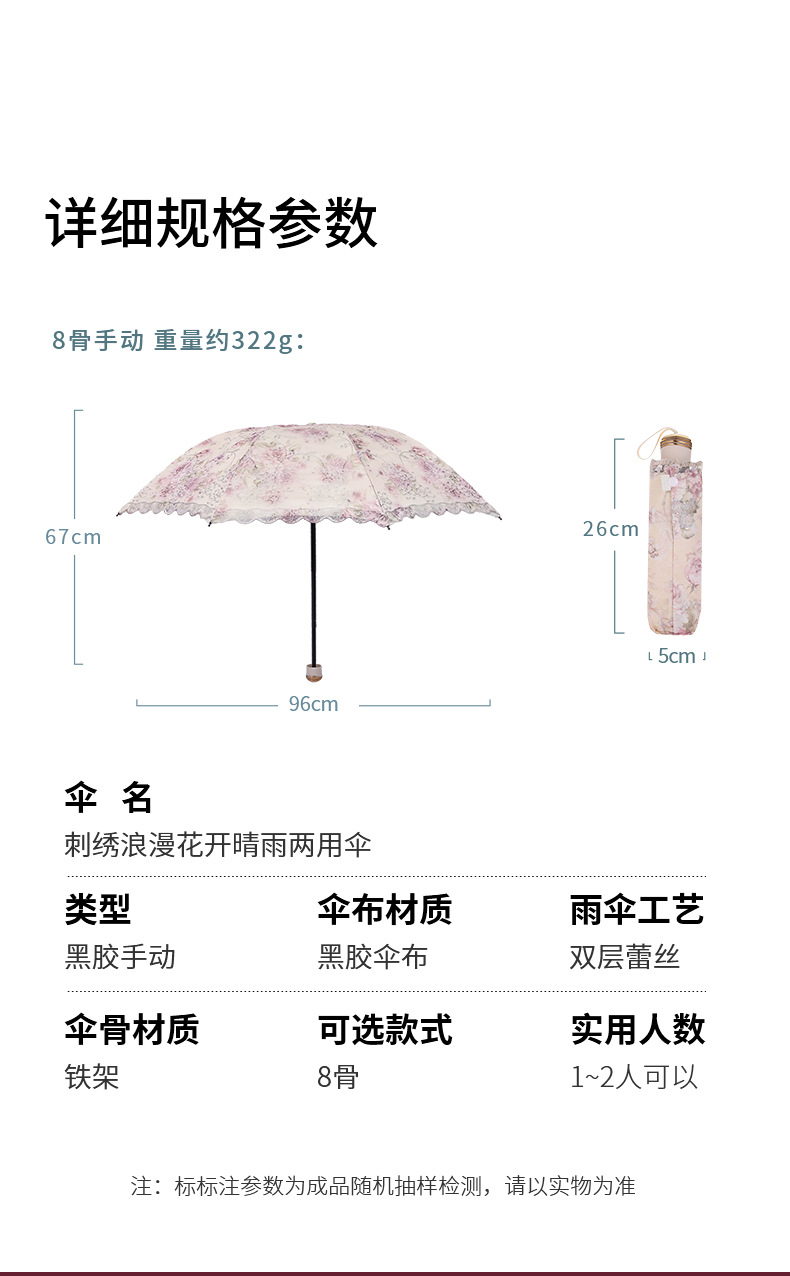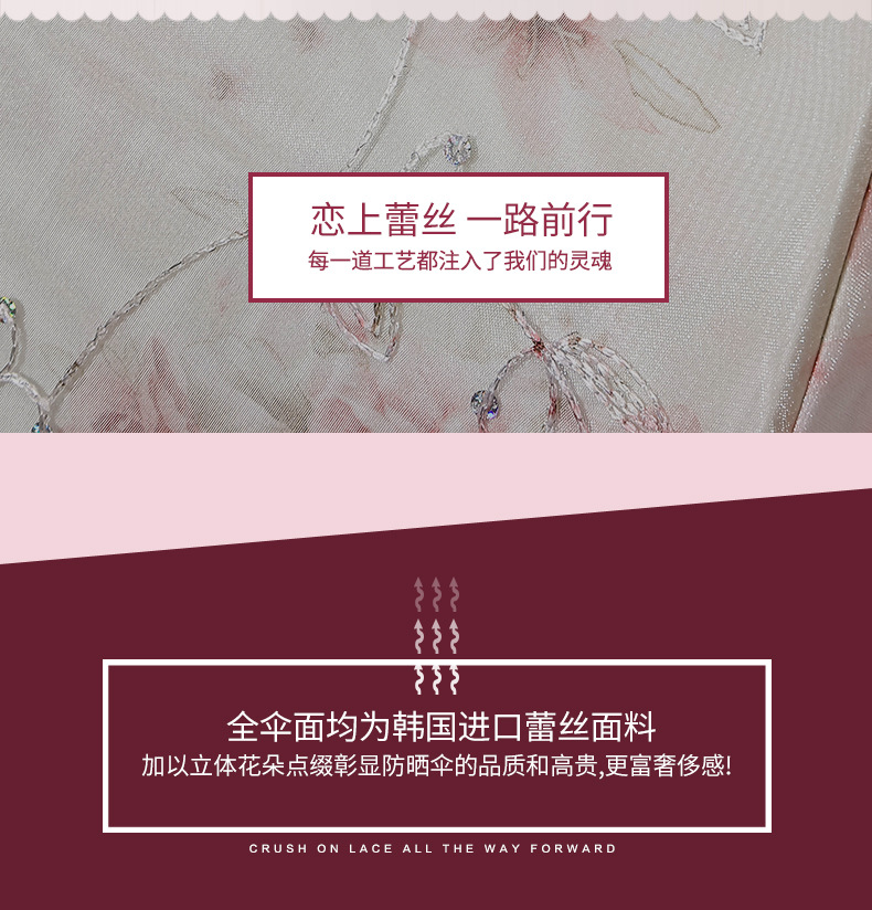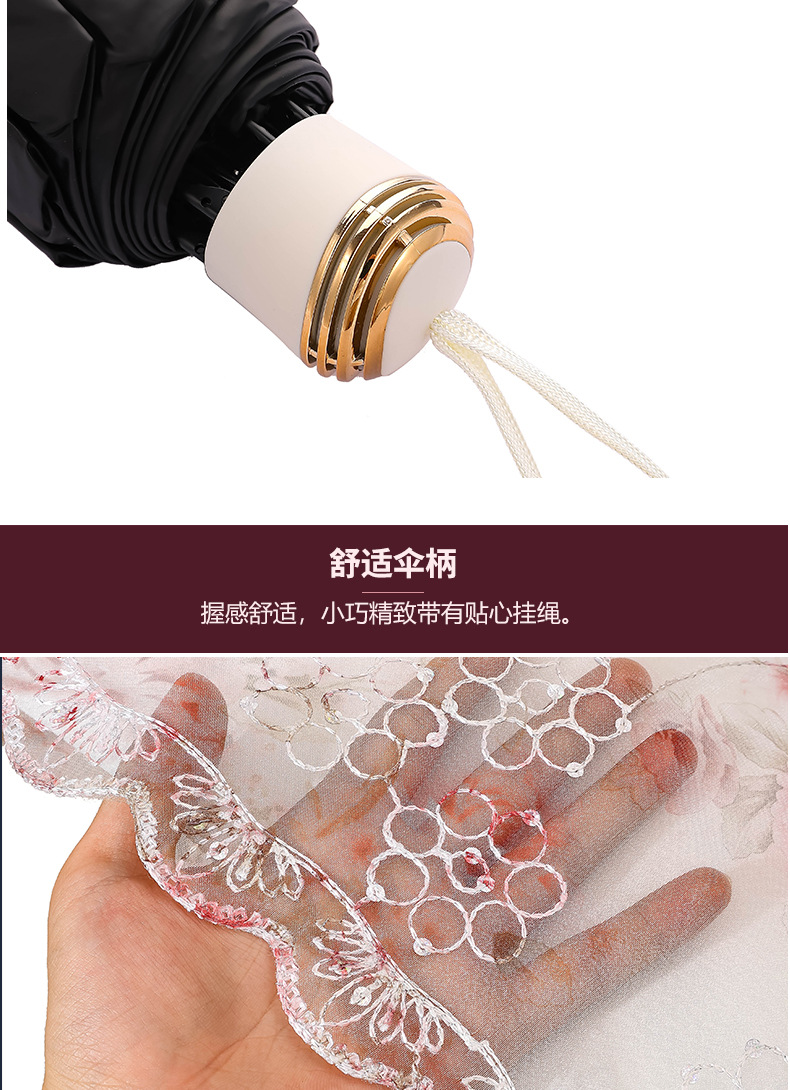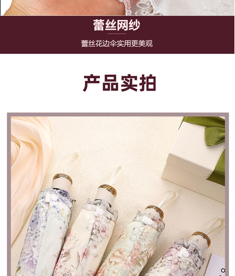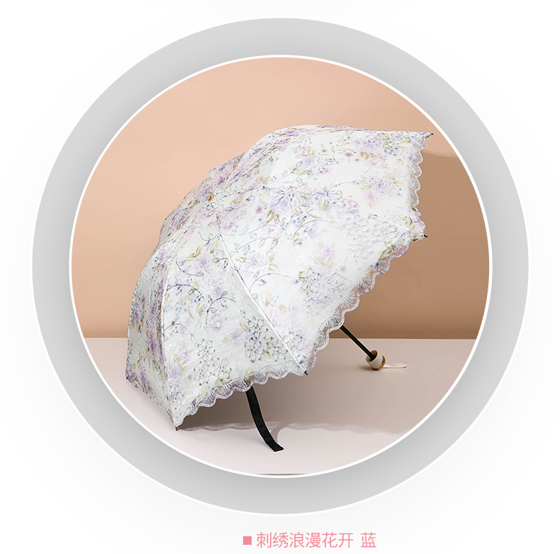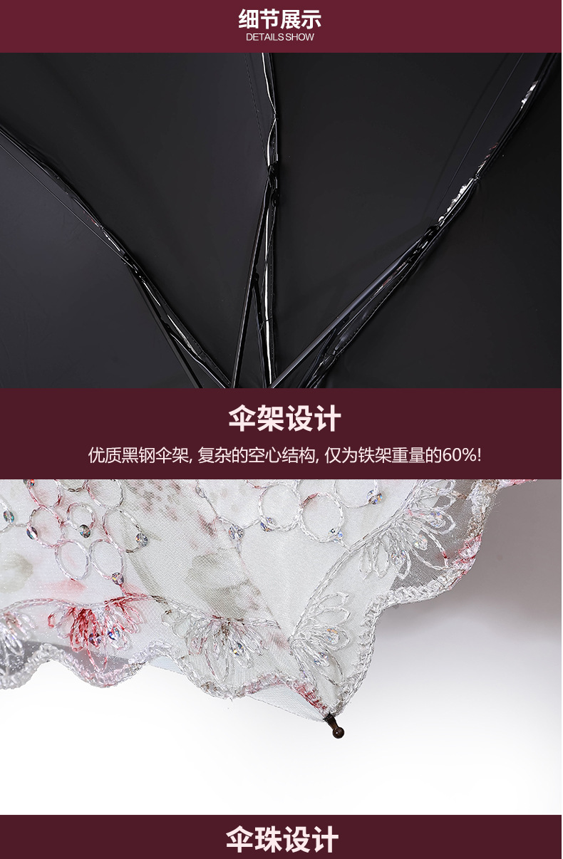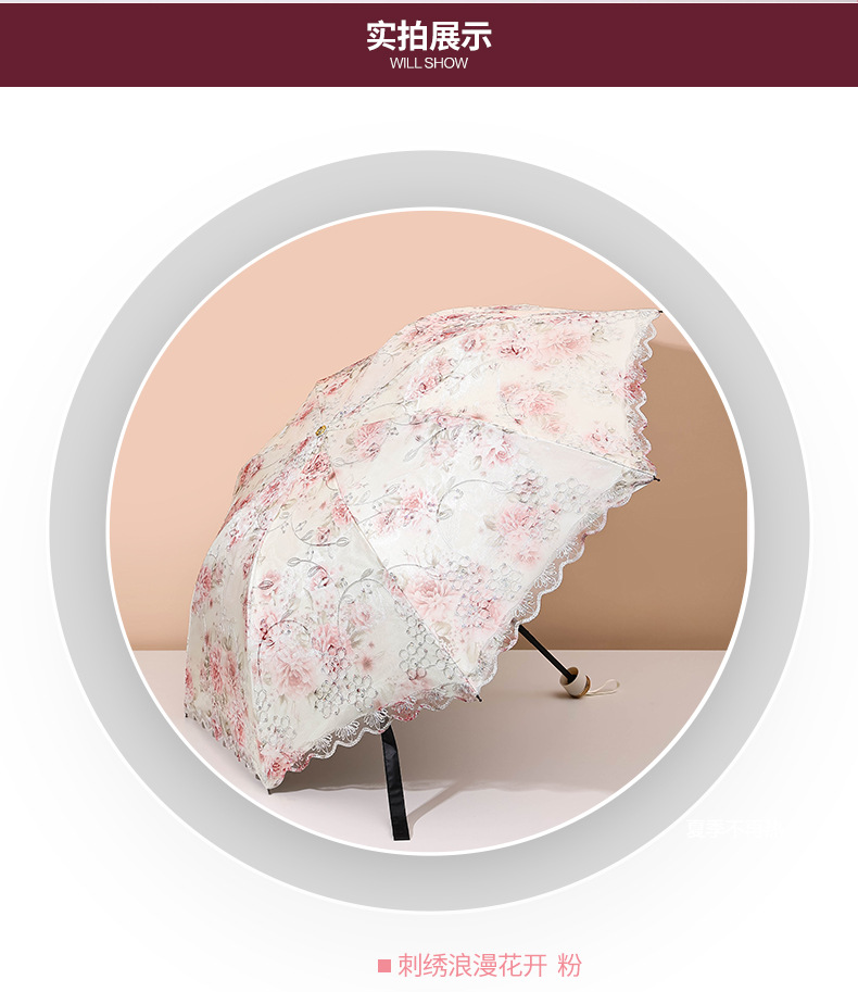 더블 레이어 자수 스팽글 레이스 비닐 태양 우산 여신 비 이중 사용 접이식 태양 보호 UV 보호 UPF50 +스토어 가기