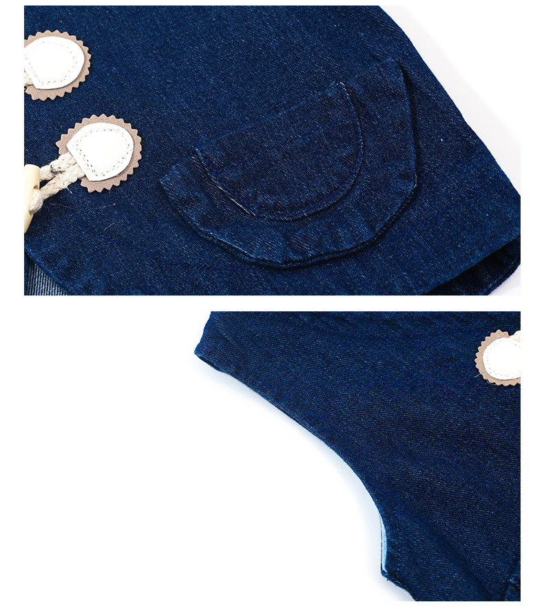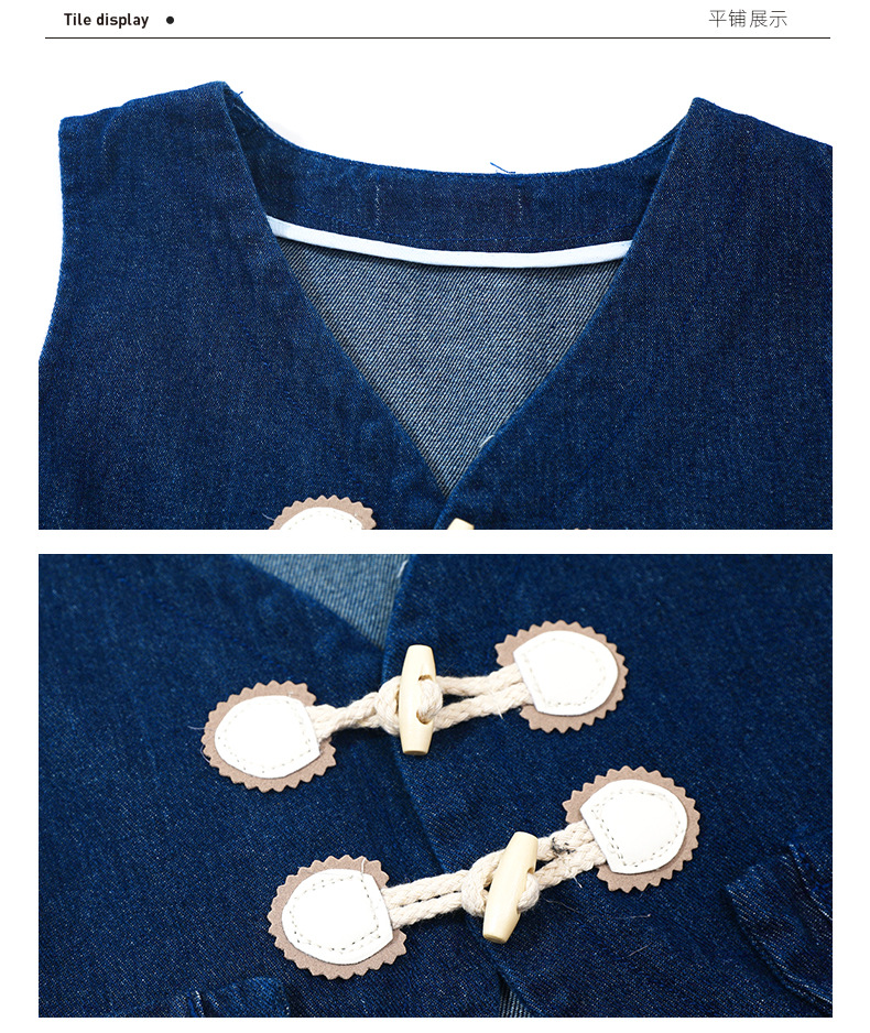 아기 소녀 봄 옷 새로운 중국 스타일의 데님 조끼 3 피스 세트 중소 규모. 어린이 달콤한 스타일 바닥 셔츠 느슨한 넓은 다리 바지