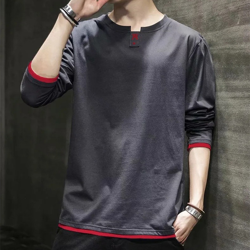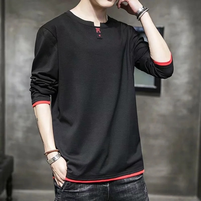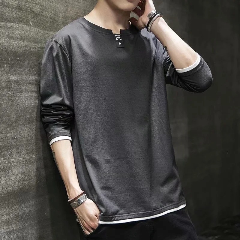 2024 봄과 가을 긴팔 티셔츠 남자의 단색 둥근 목 가을 패션 브랜드 유행 탑 가을 옷베이스 셔츠