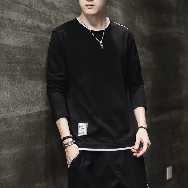 2024 봄과 가을 긴팔 티셔츠 남자의 단색 둥근 목 가을 패션 브랜드 유행 탑 가을 옷베이스 셔츠스토어 가기