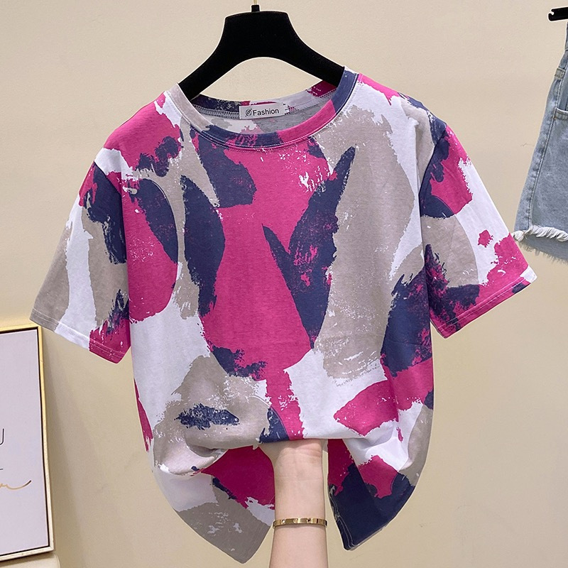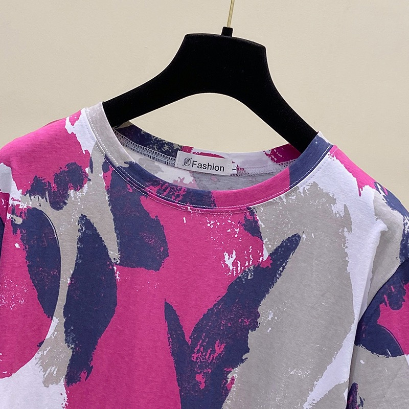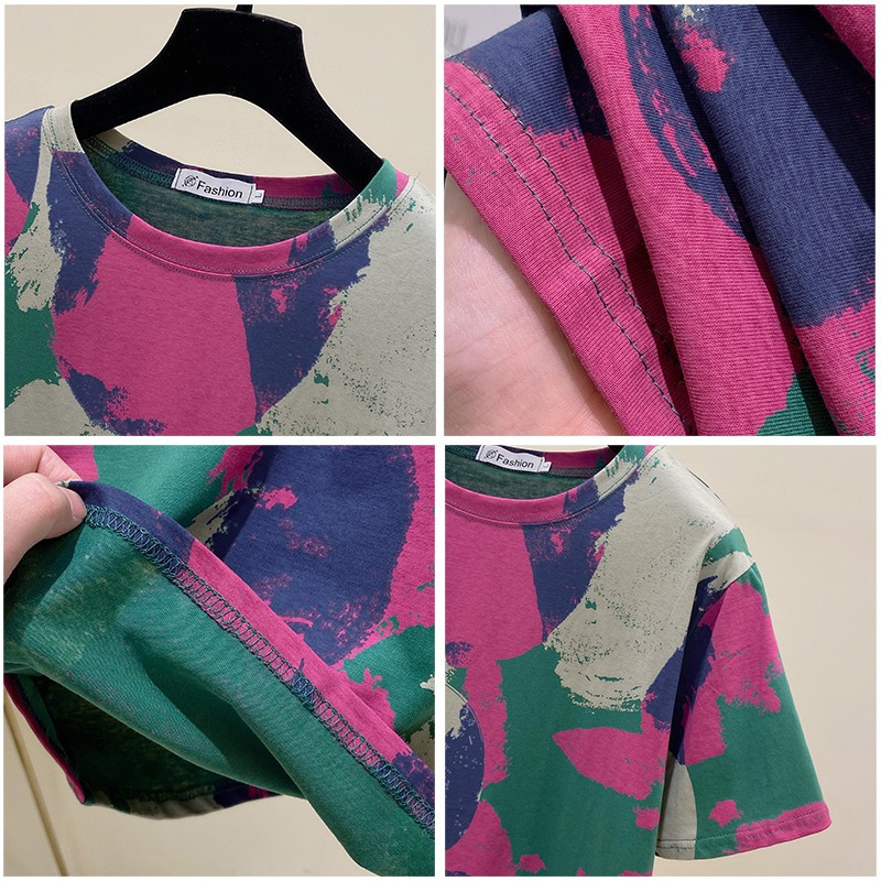 2024 여름 패션 새로운 대형 여성용 반팔 티셔츠 통통한 여성복 벨리 커버 연령 감소 느슨한 슬림 핏 탑스토어 가기