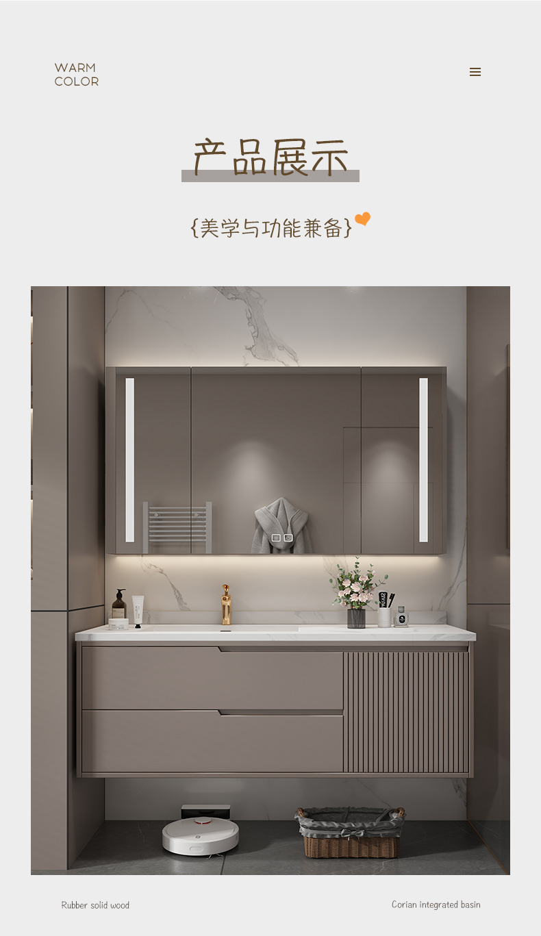 • 120cm 메인 캐비닛 + 록 플레이트 원활한 분지 + 스마트 스토리지 미러 캐비닛