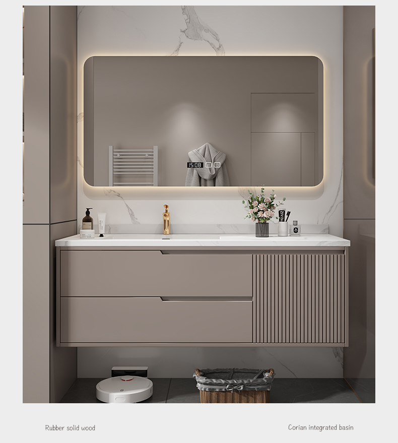 • 130cm 메인 캐비닛 + 록 플레이트 원활한 분지 + 스마트 스토리지 미러 캐비닛