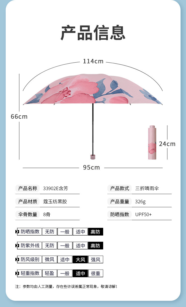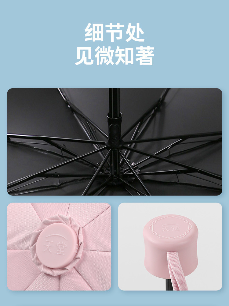 새로운 파라다이스 우산 정품 블랙 접착제 태양 보호 UV 보호 우산 3 배 휴대용 접이식 비 및 비 이중 사용 우산 여성용스토어 가기