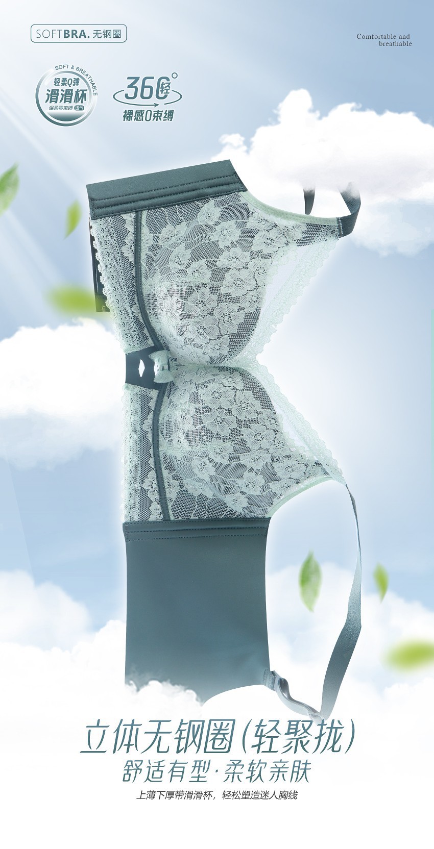 Man Qiying 8511 Upper Thin Lower Thick Sliding Cup 없음 스틸 링 편안한 브래지어 작은 가슴 푸시 업 레이스 속옷스토어 가기