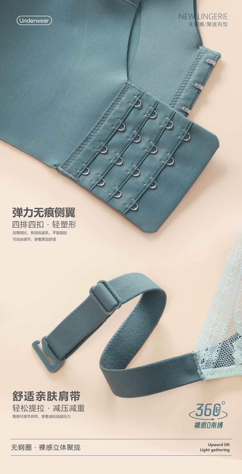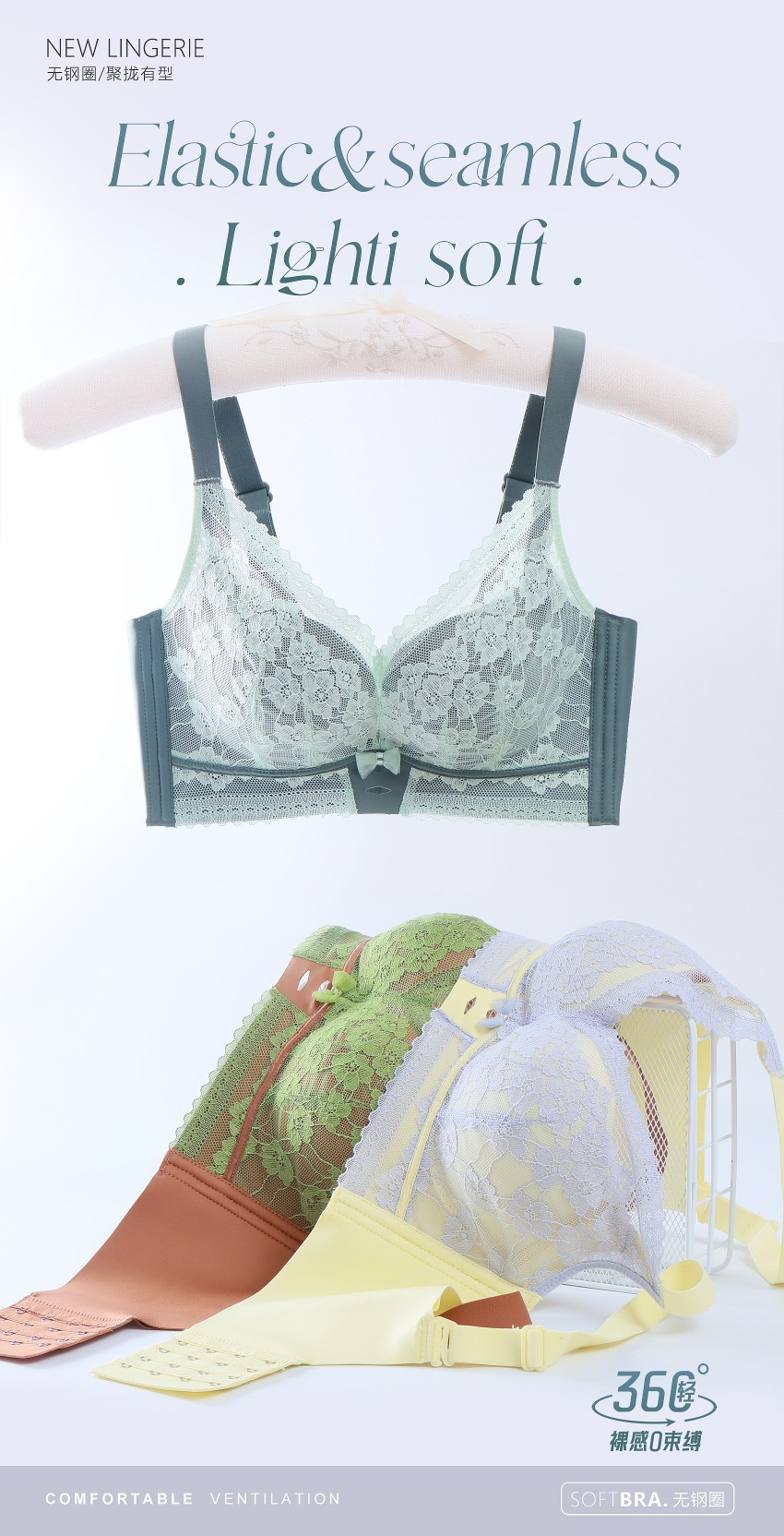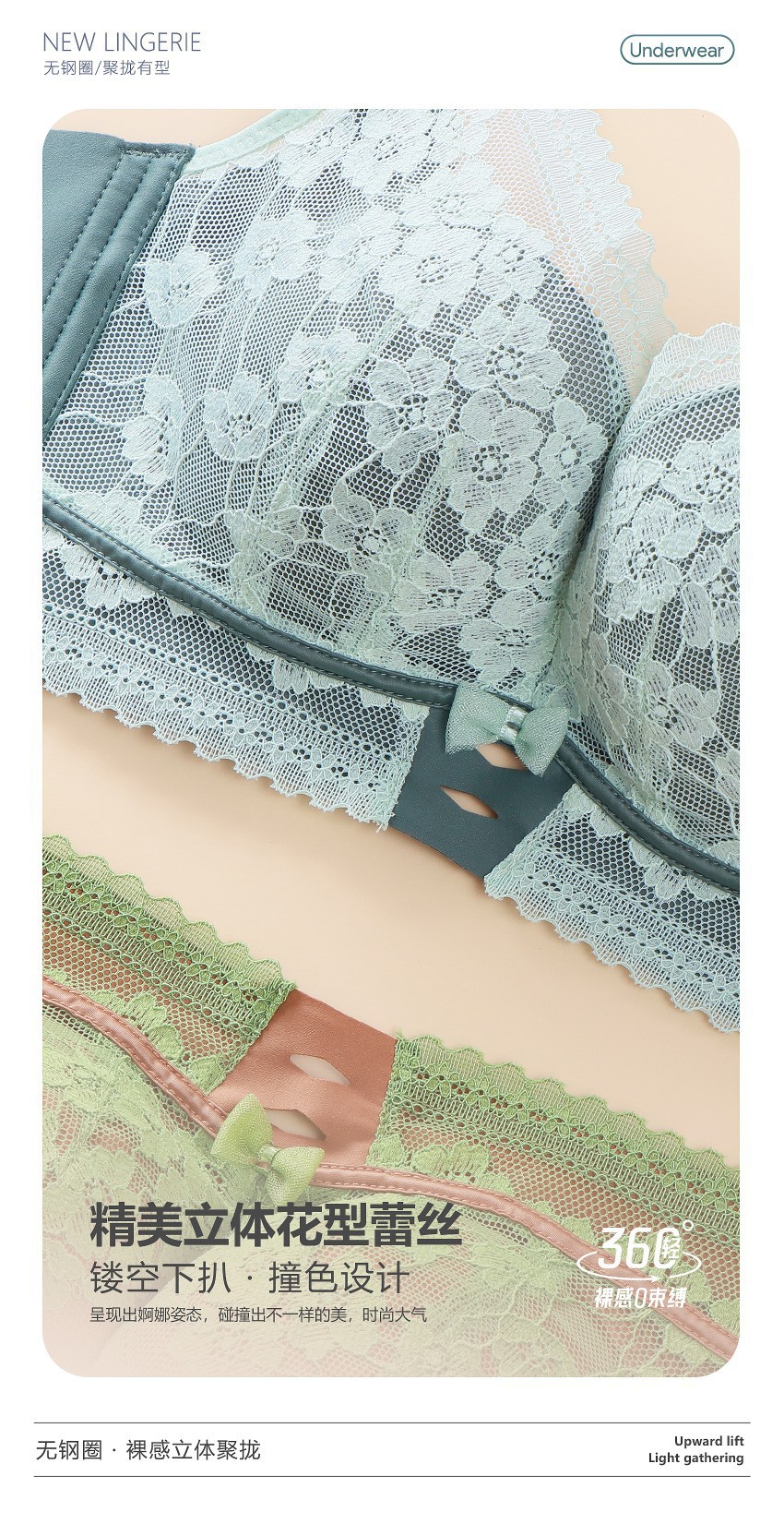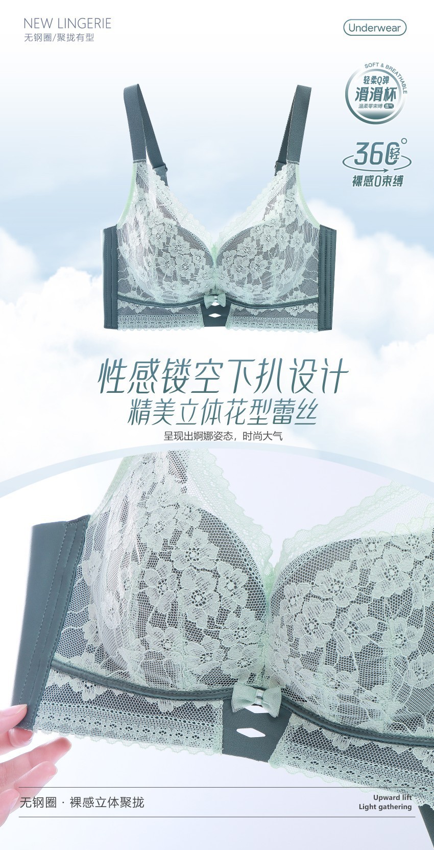 Man Qiying 8511 Upper Thin Lower Thick Sliding Cup 없음 스틸 링 편안한 브래지어 작은 가슴 푸시 업 레이스 속옷