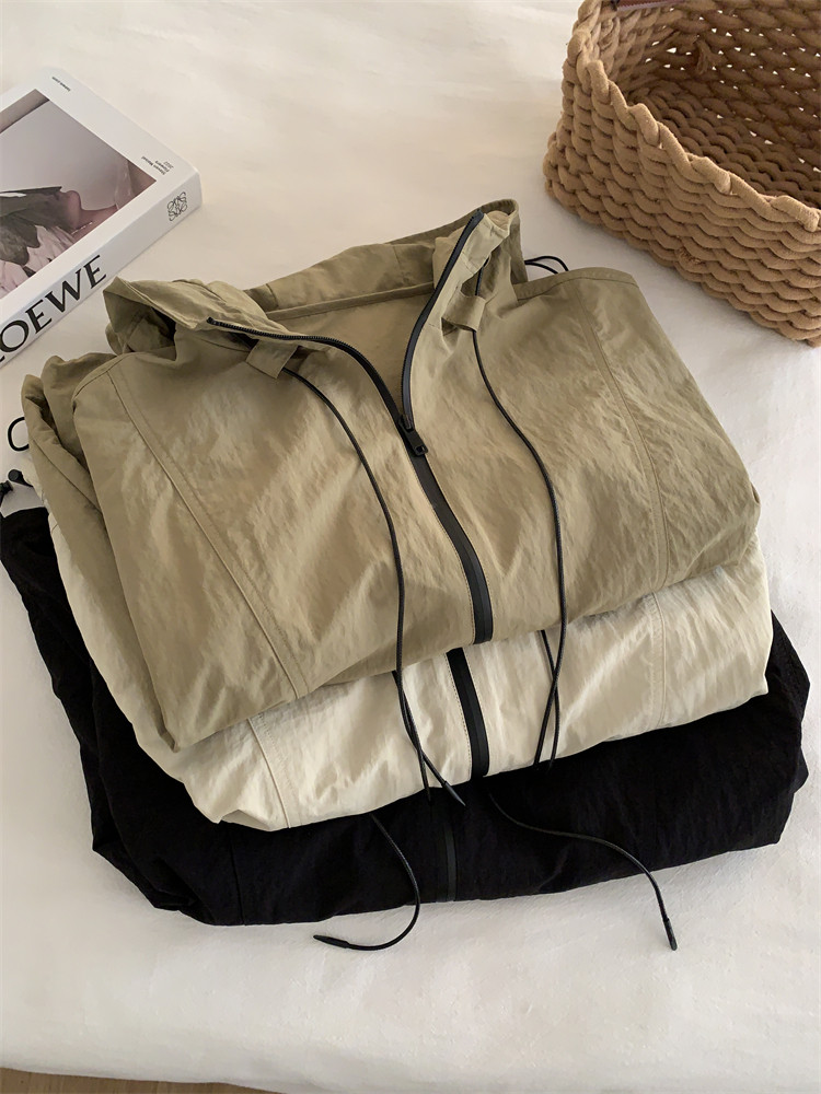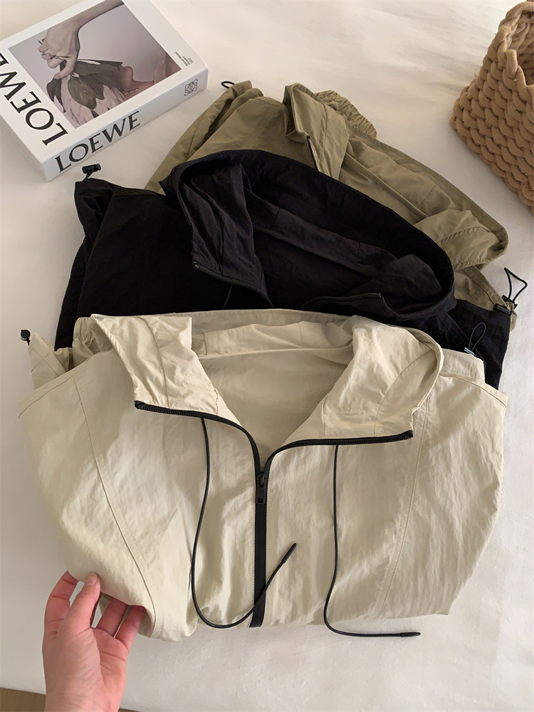 봄 선 스크린 야외 캐주얼 충전 재킷 여성의 느슨한 슬리밍 수직 칼라 후드 자켓 방풍 지퍼 셔츠 트렌디스토어 가기
