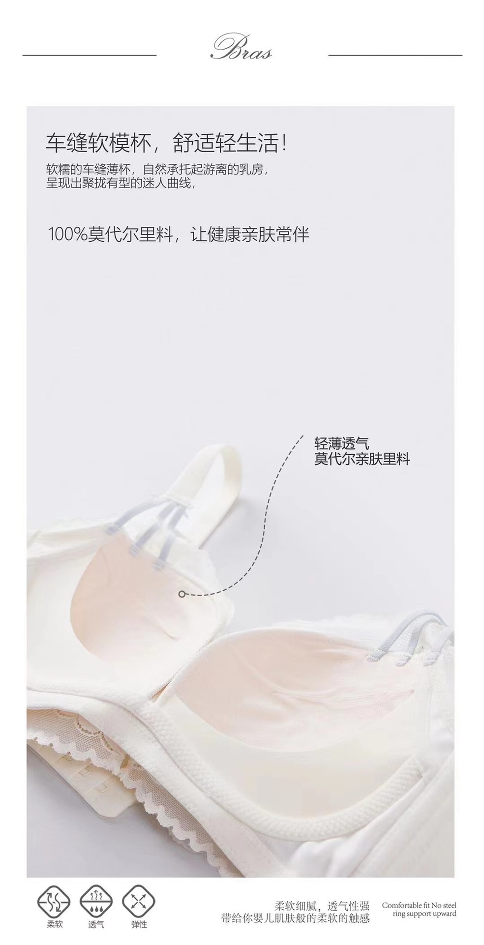 8097 소프트 왁스 편안한 모달 소프트 코튼 컵 브래지어 작은 가슴 푸시 업 섹시한 레이스 속옷 조정 가능한 브래지어