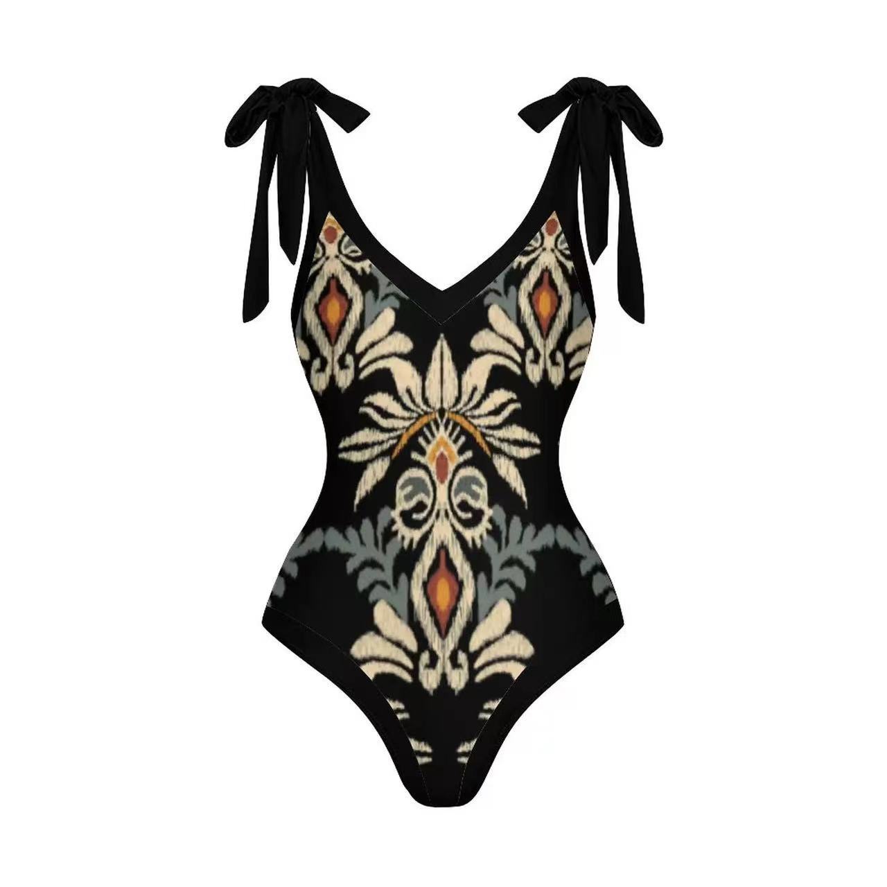 2024 유럽과 미국의 대외 무역 원피스 수영복 섹시한 타이트 V 넥 스트랩 비치 원피스 세트 도매 국경 수영복