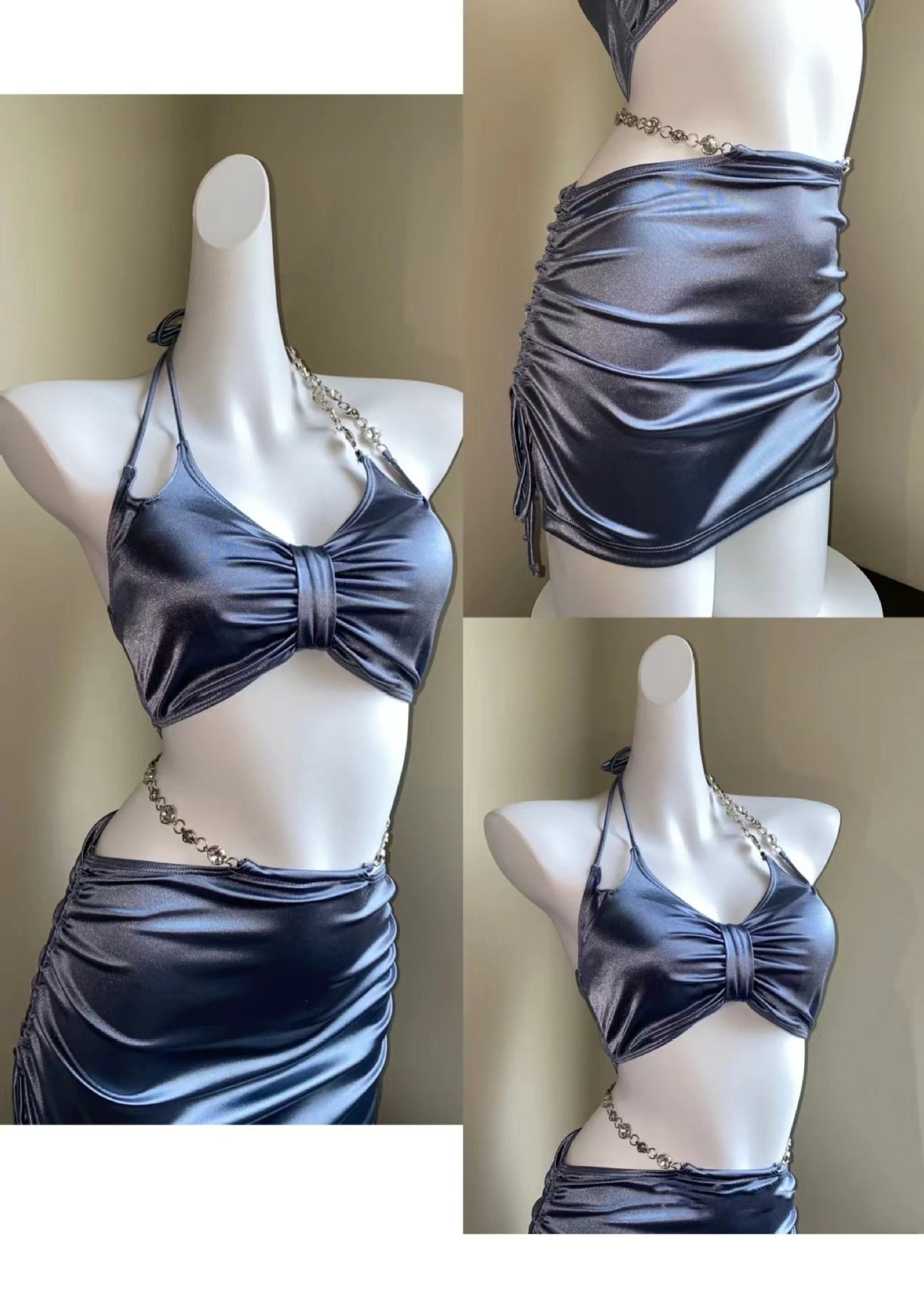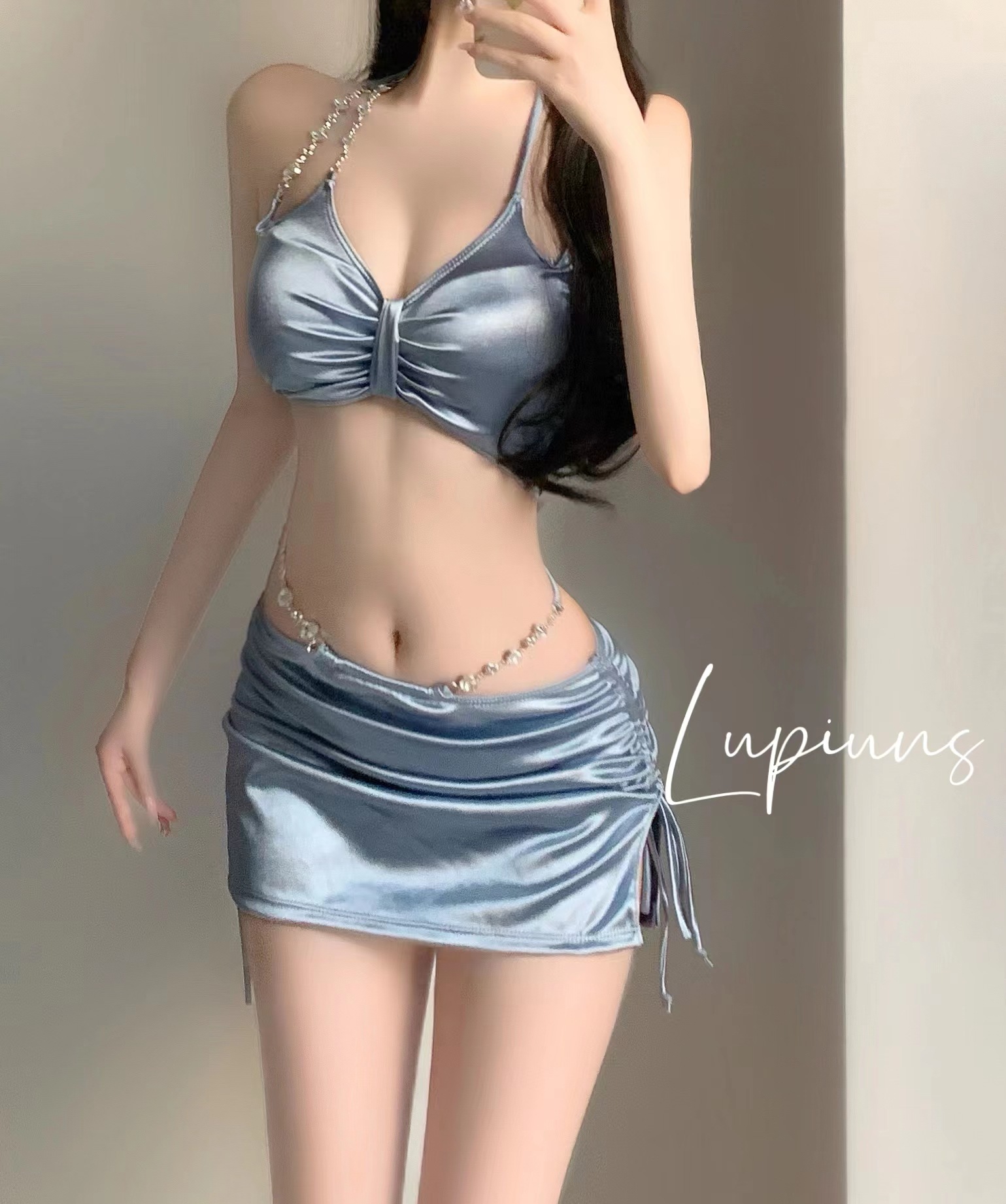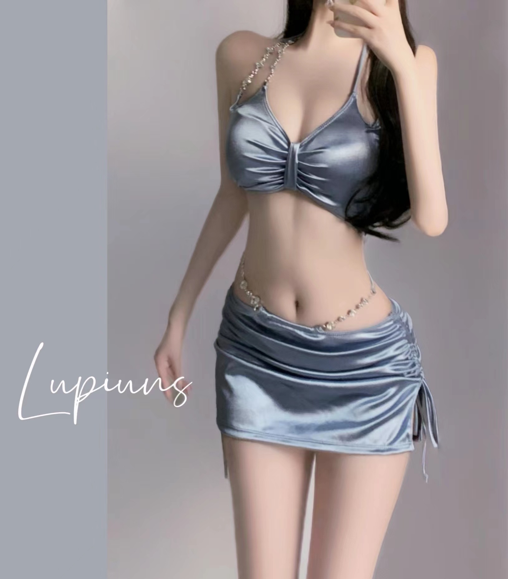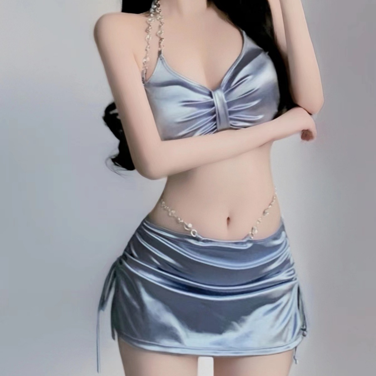 수영복 여성 신형 실버 하이 엔드 섹시 스플릿 3 피스 세트 온천 휴가 패션 비키니 스플릿 수영복