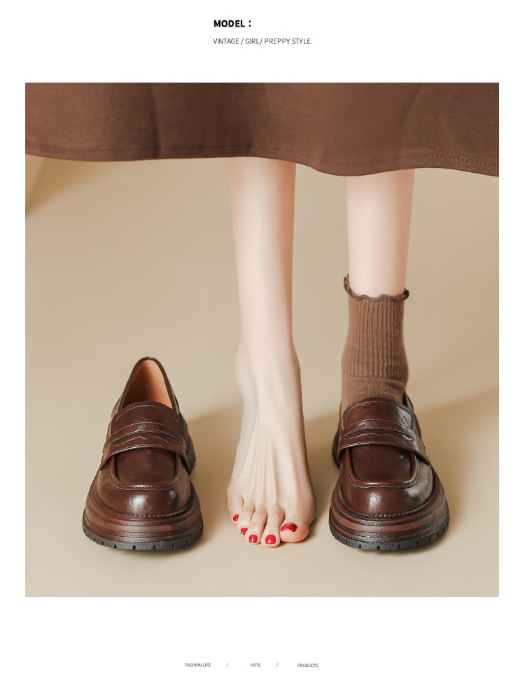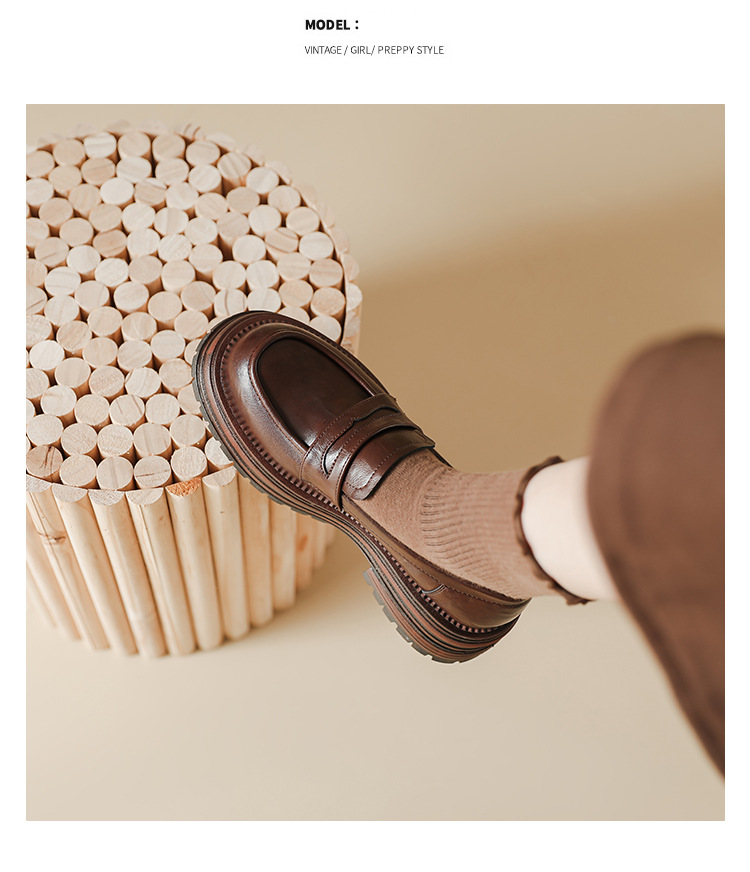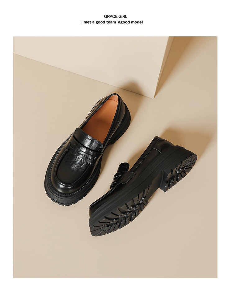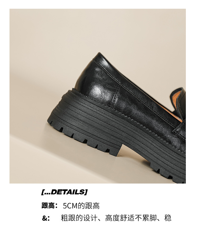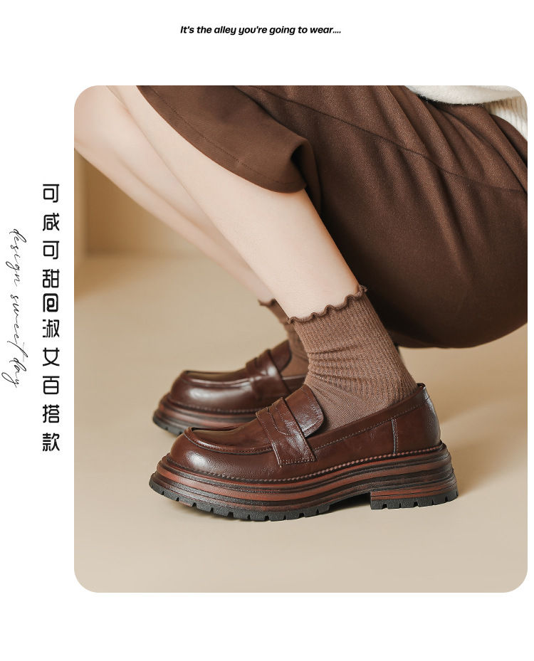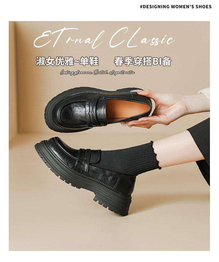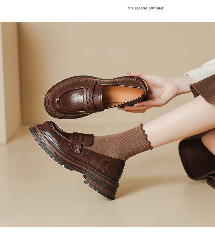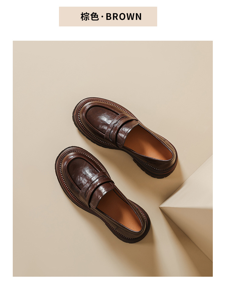 새로운 봄과 여름 슬립 온 양가죽 복고풍 청키 뒤꿈치 가죽 가죽 신발을 2024 여성용 두꺼운 밑창 영국 스타일의 둥근 발가락 싱글 레이어 신발스토어 가기