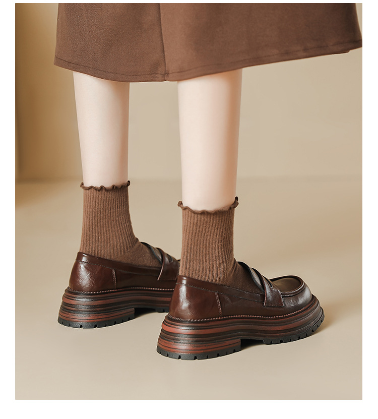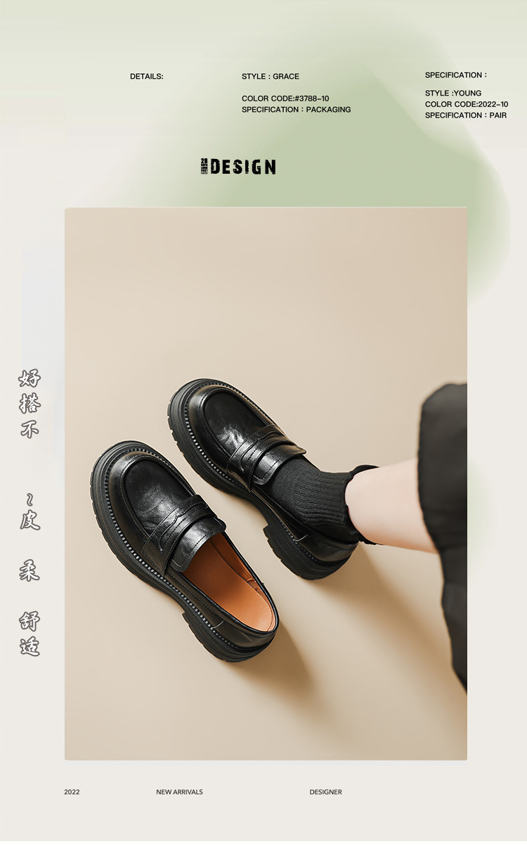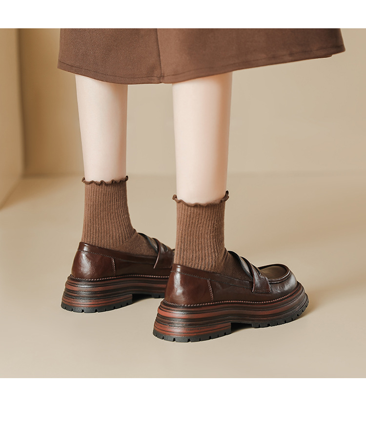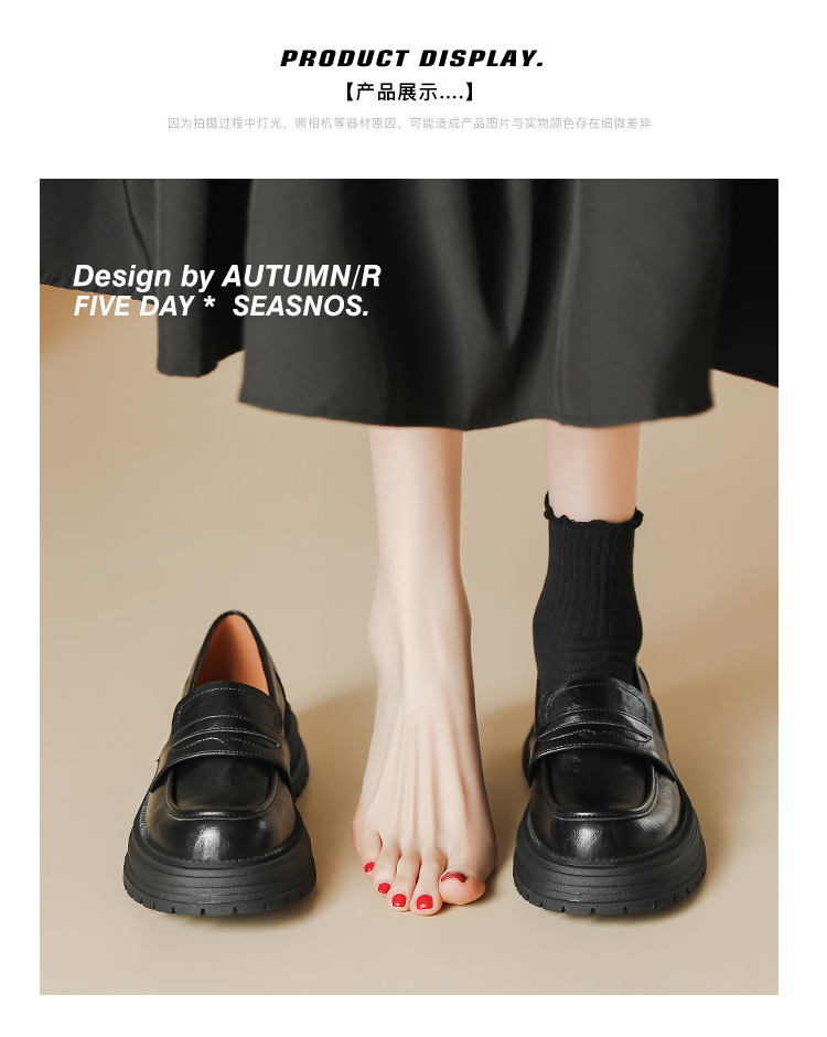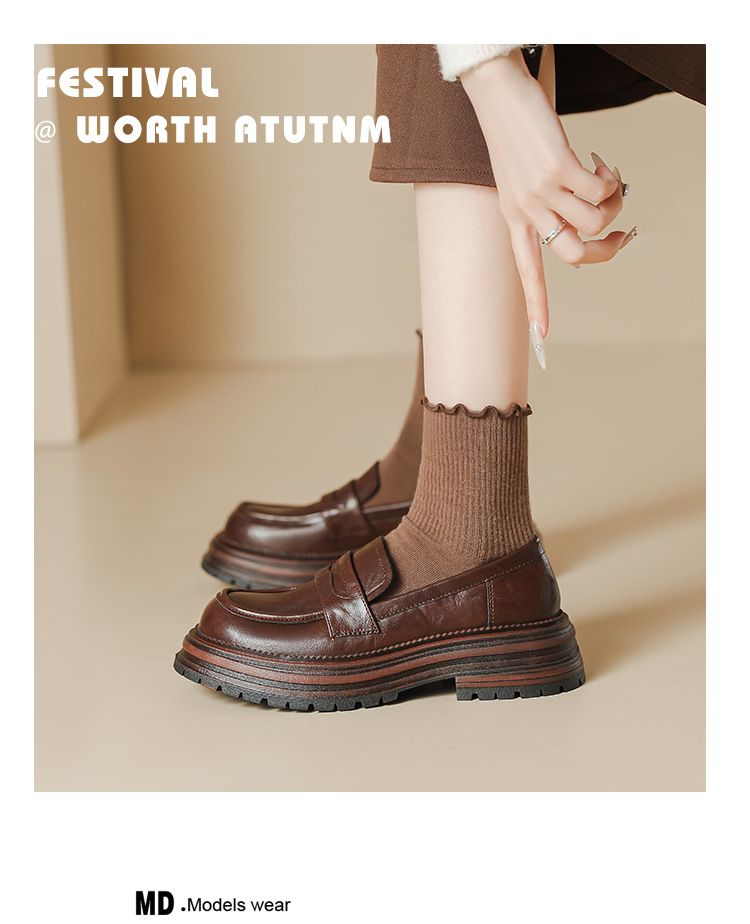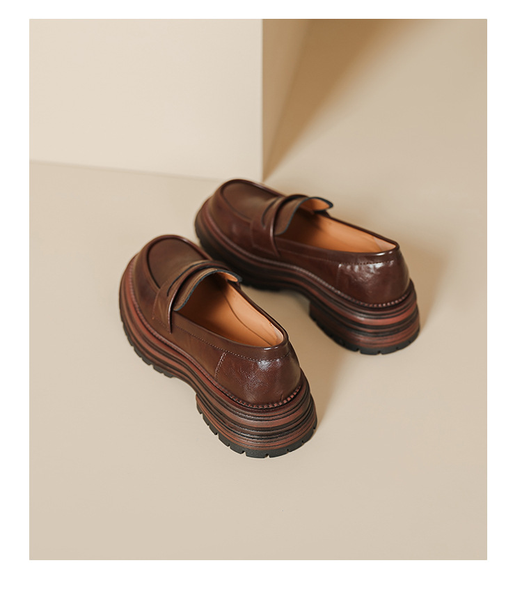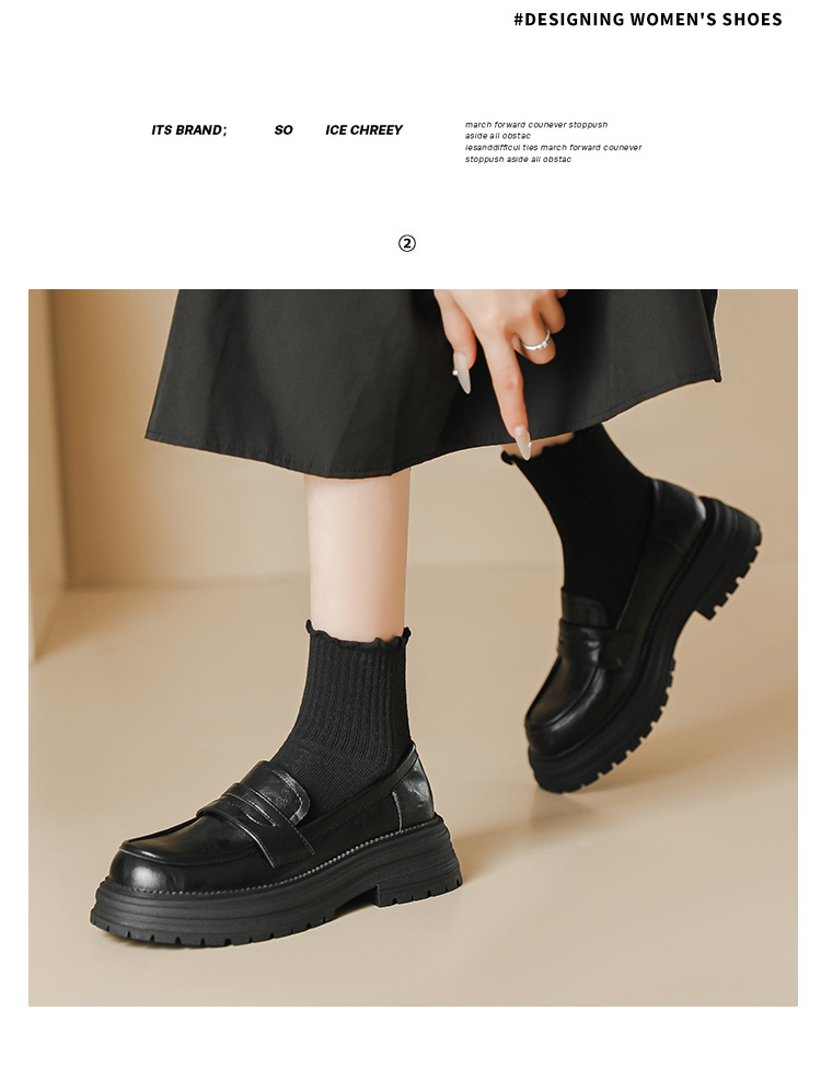 새로운 봄과 여름 슬립 온 양가죽 복고풍 청키 뒤꿈치 가죽 가죽 신발을 2024 여성용 두꺼운 밑창 영국 스타일의 둥근 발가락 싱글 레이어 신발스토어 가기