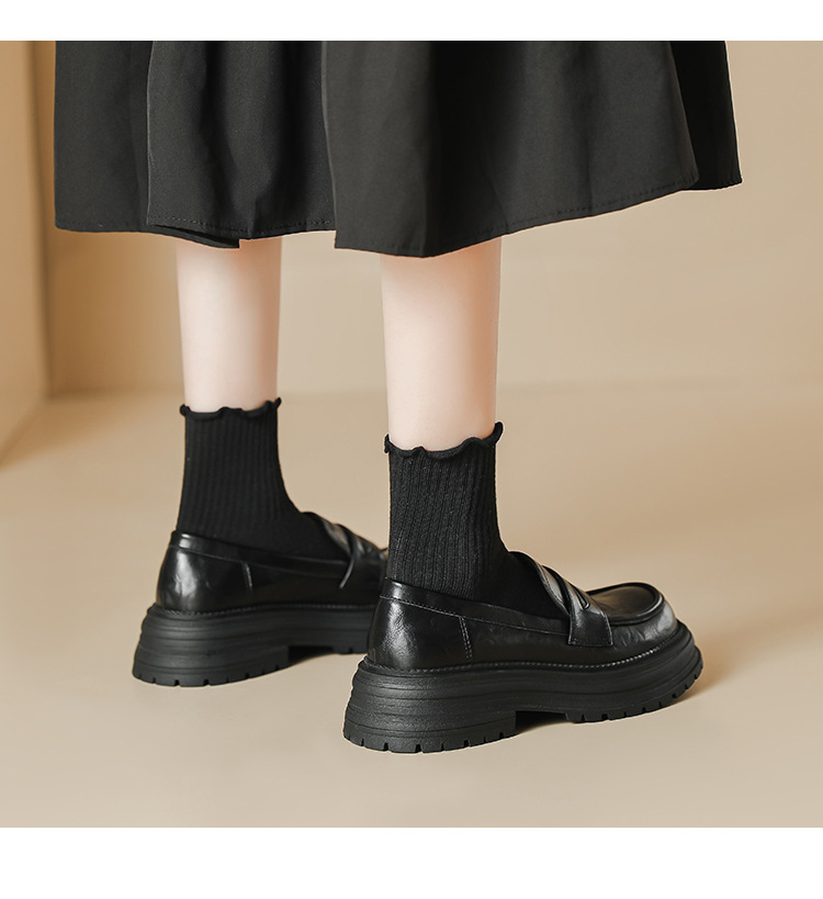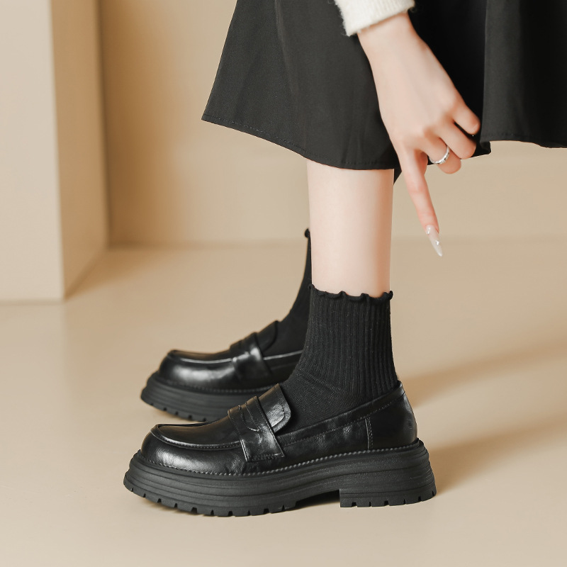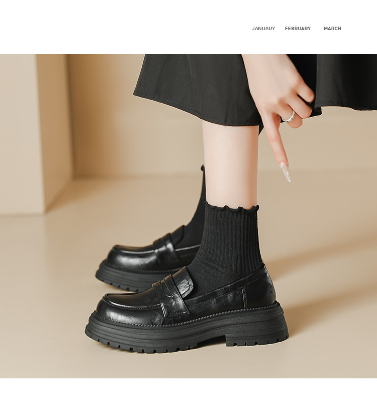 새로운 봄과 여름 슬립 온 양가죽 복고풍 청키 뒤꿈치 가죽 가죽 신발을 2024 여성용 두꺼운 밑창 영국 스타일의 둥근 발가락 싱글 레이어 신발