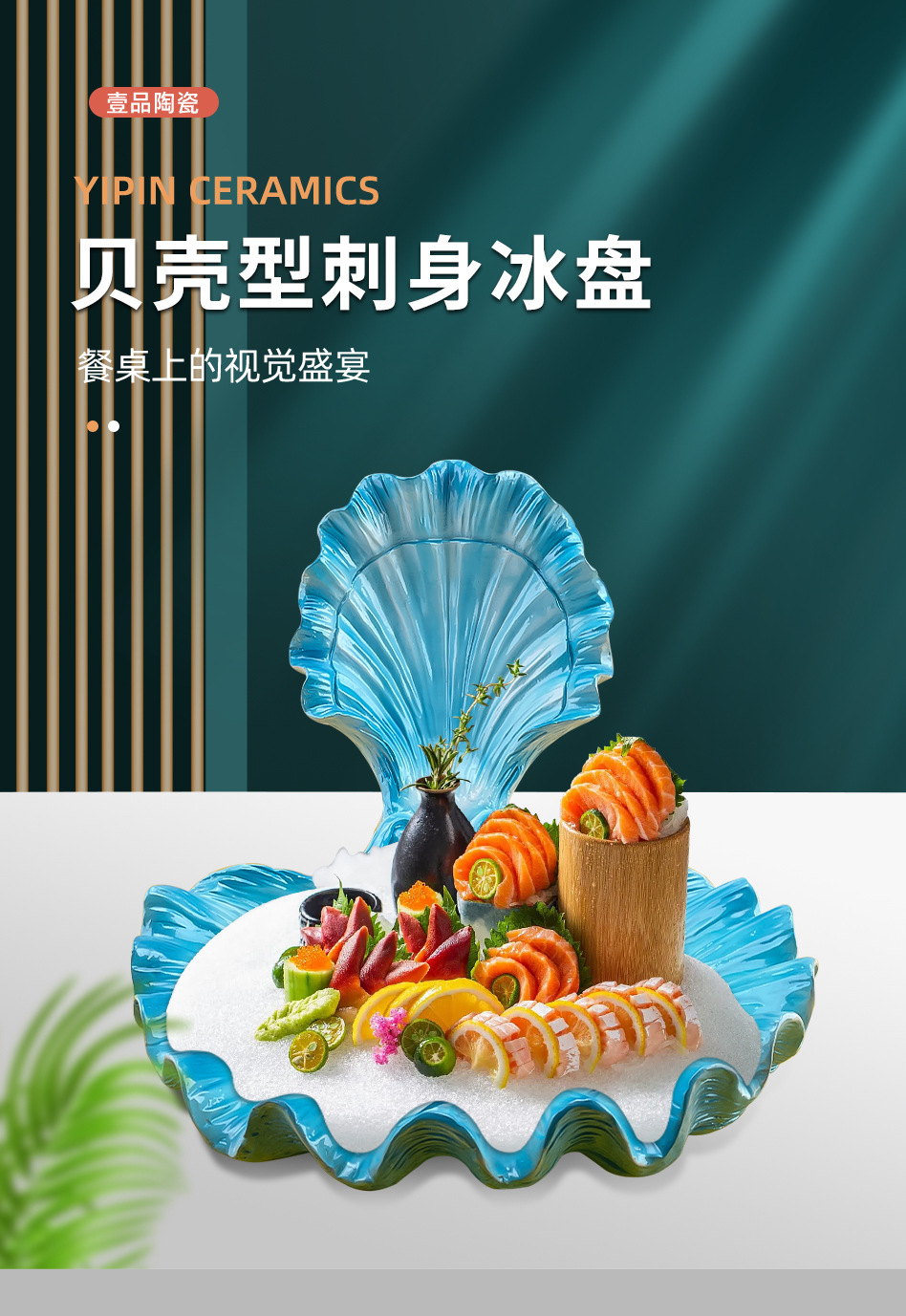 진주 껍질 회 접시 얼음 접시 창조적 인 예술 요리 드라이 아이스 식기 연어 회 특별 접시