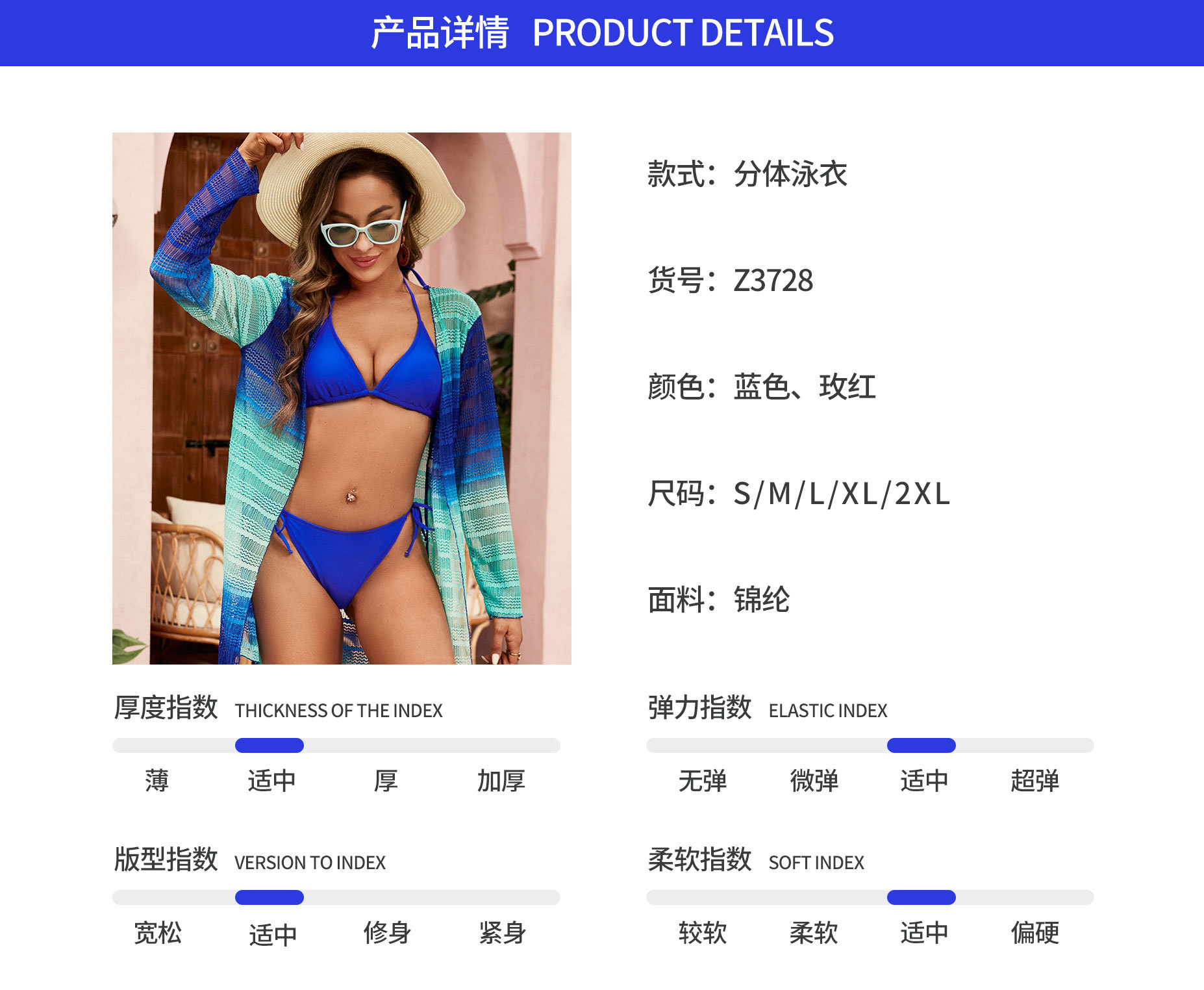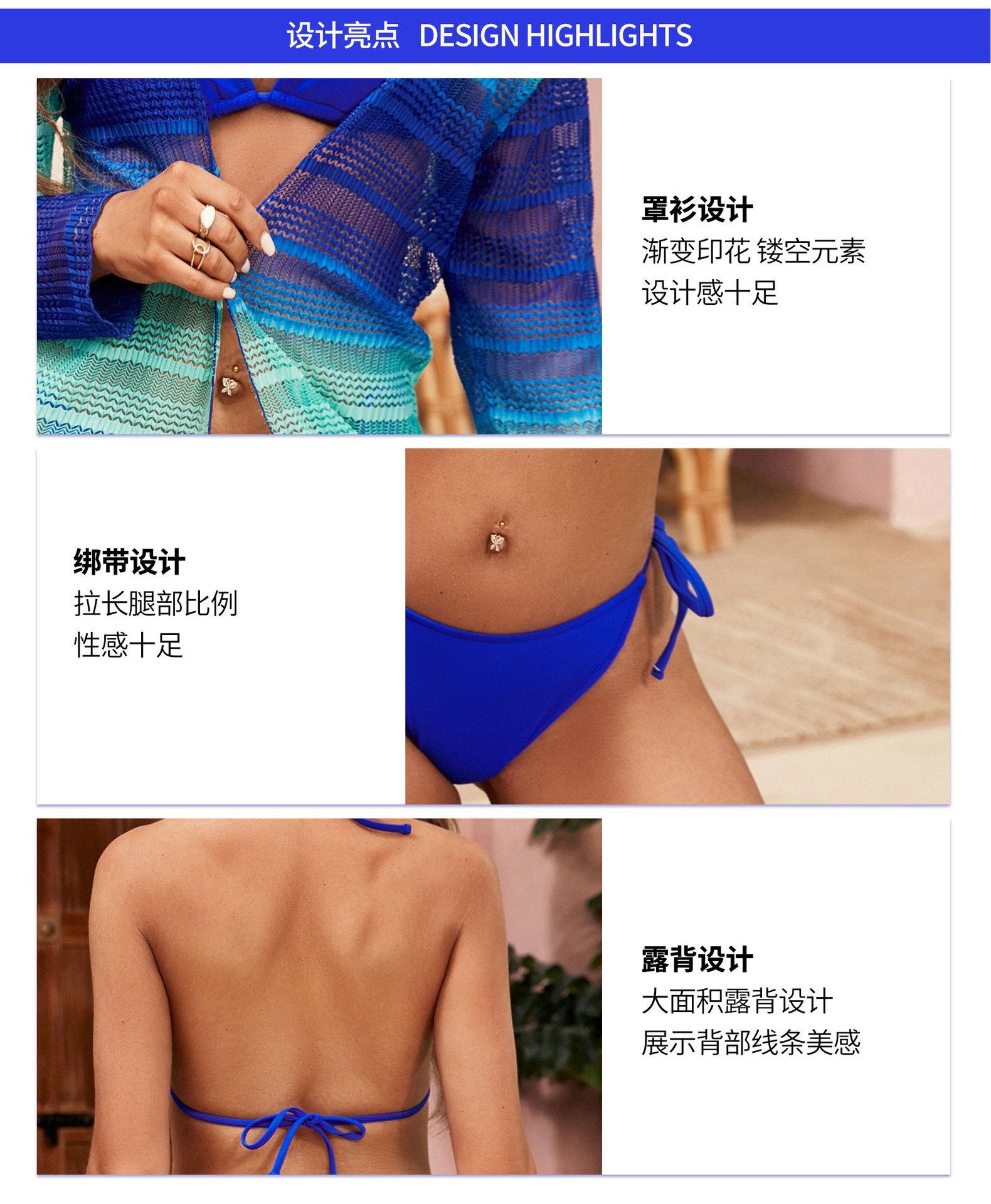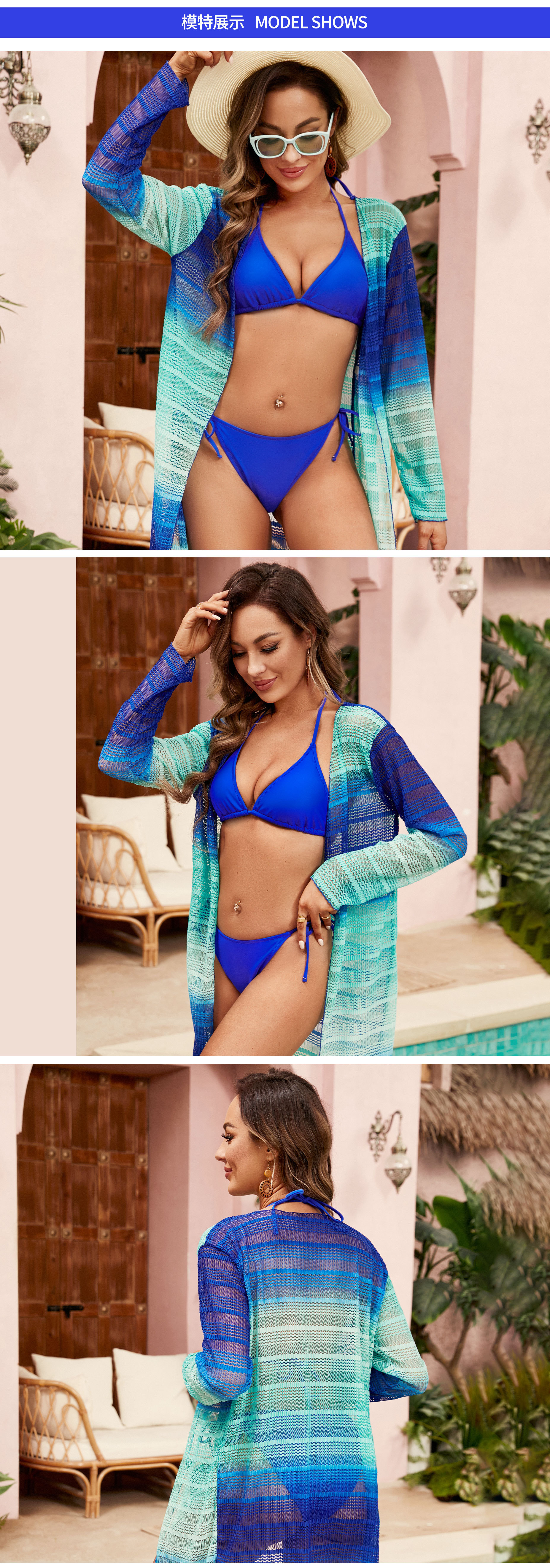 2025 새로운 유럽과 미국의 국경 간 수영복 여성 그라데이션 메쉬 재킷 솔리드 컬러 3 점 비키니 섹시한 3 피스 세트스토어 가기