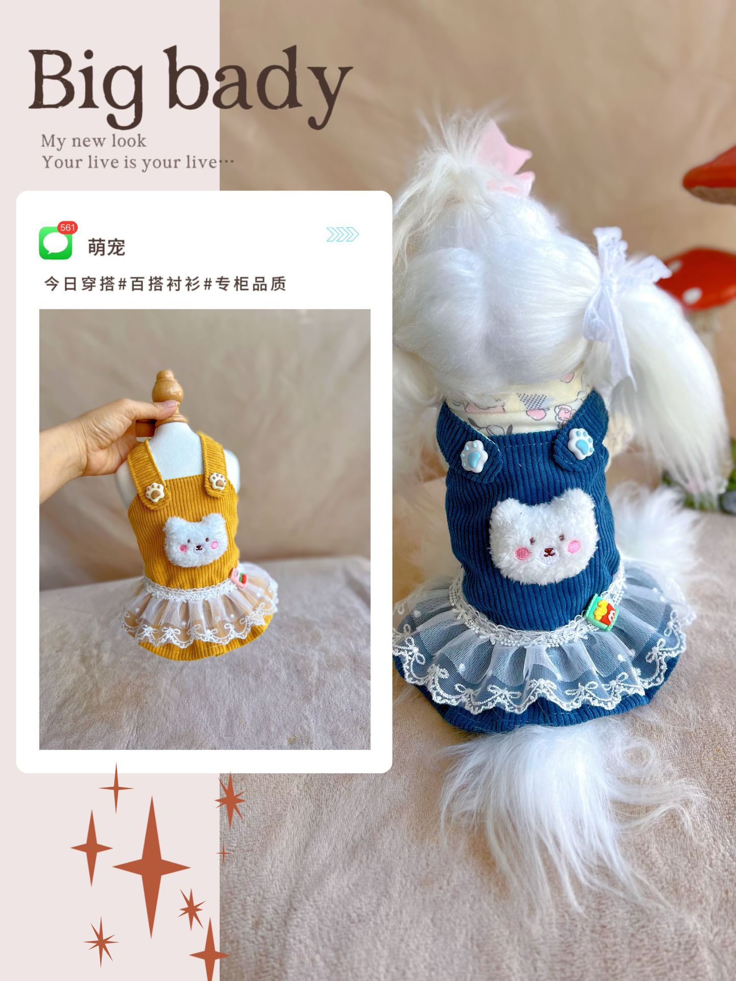 애완견 옷 소형 및 중형견 테디 비숑 말티즈 고양이 데님 스커트 공주 스타일스토어 가기