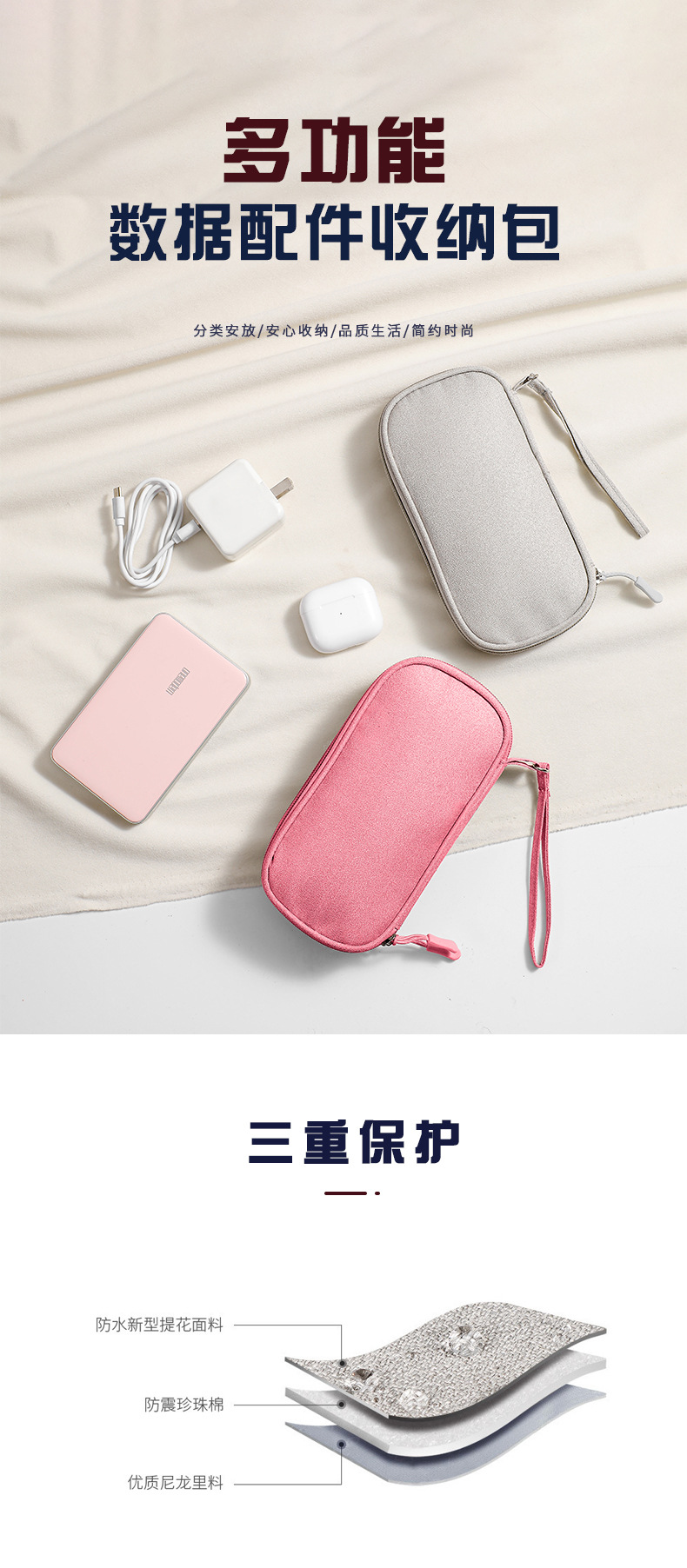 디지털 액세서리 저장 가방 다층 전원 공급 장치 하드 디스크 보호 케이스 충전 보물 U 디스크 데이터 케이블 저장 가방