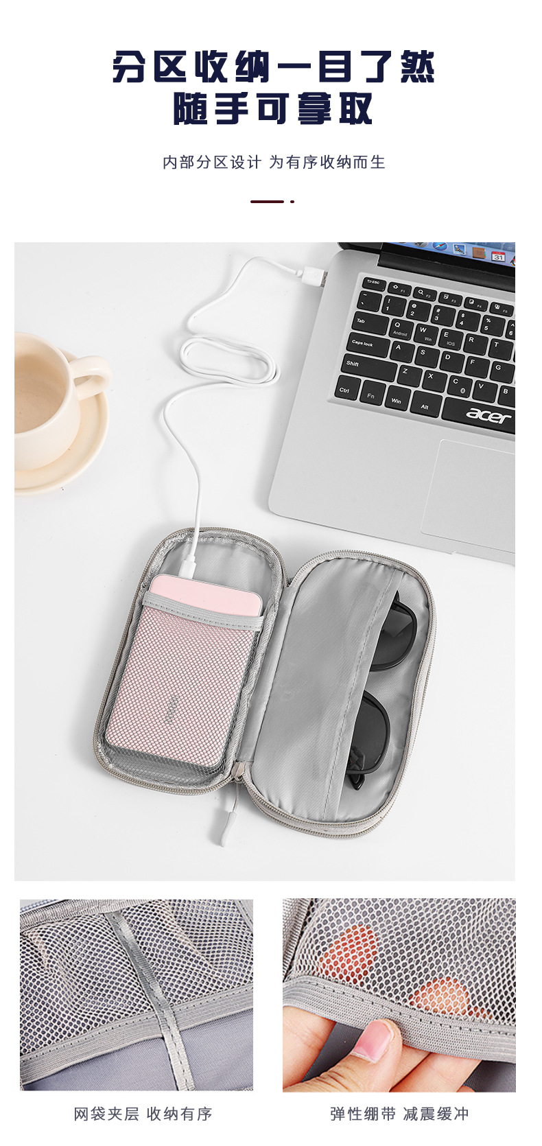 디지털 액세서리 저장 가방 다층 전원 공급 장치 하드 디스크 보호 케이스 충전 보물 U 디스크 데이터 케이블 저장 가방스토어 가기