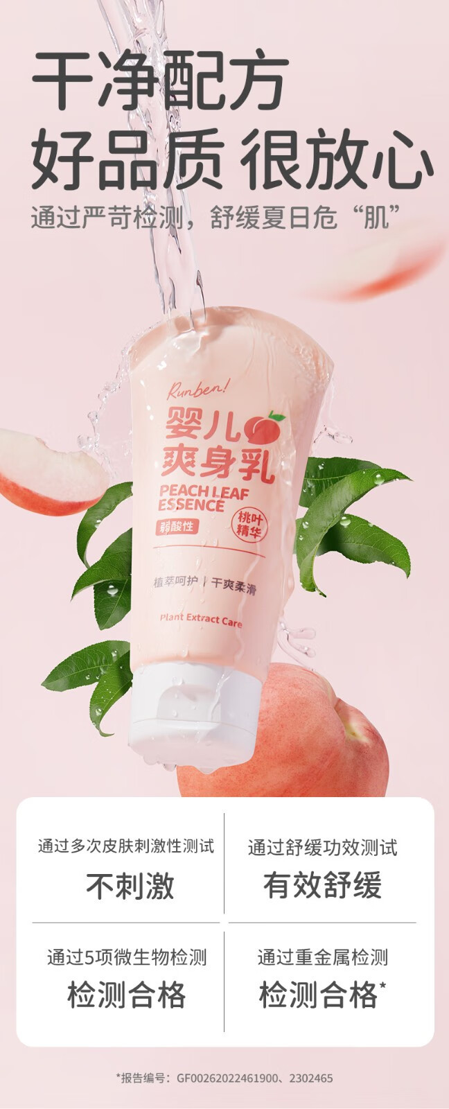 룬벤 베이비 바디 로션 신생아 베이비 바디 로션 복숭아 잎 에센스 바디 상쾌한 땀 흡수 스킨 로션