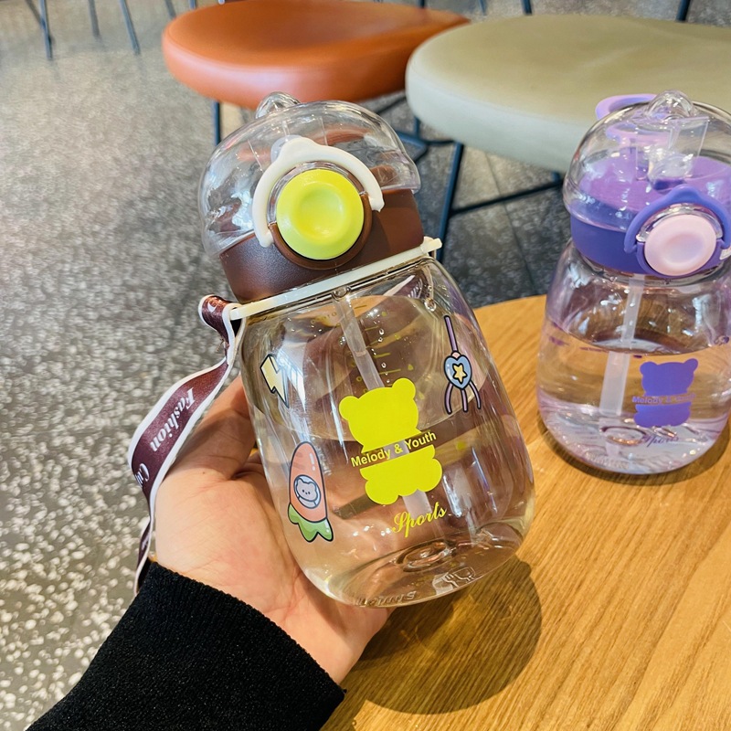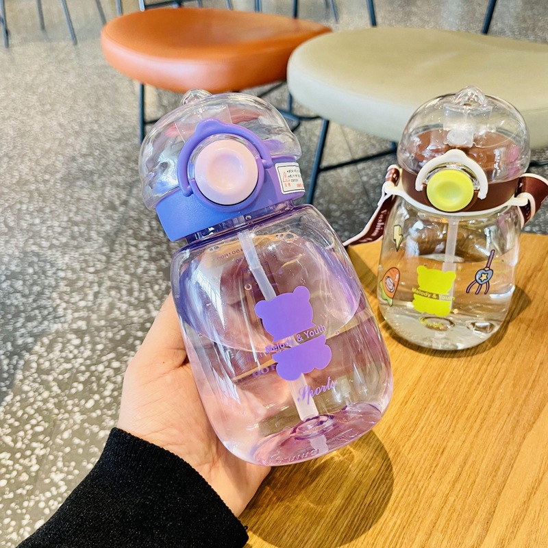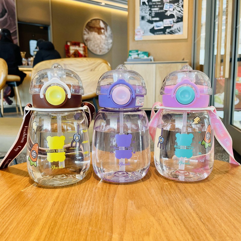만화 밀짚 컵 어린이 플라스틱 물 컵 드롭 방지 유치원 마시는 컵 학생 학교 스트랩 대용량 주전자스토어 가기