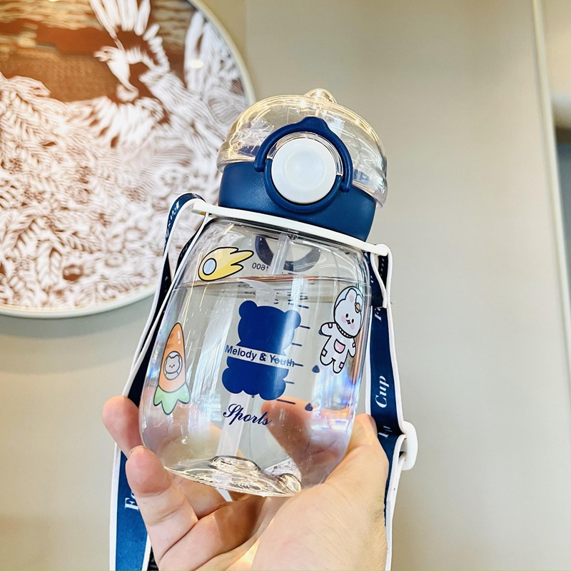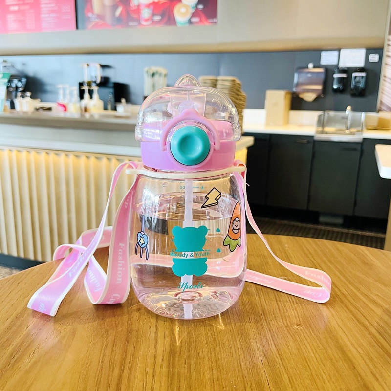 만화 밀짚 컵 어린이 플라스틱 물 컵 드롭 방지 유치원 마시는 컵 학생 학교 스트랩 대용량 주전자