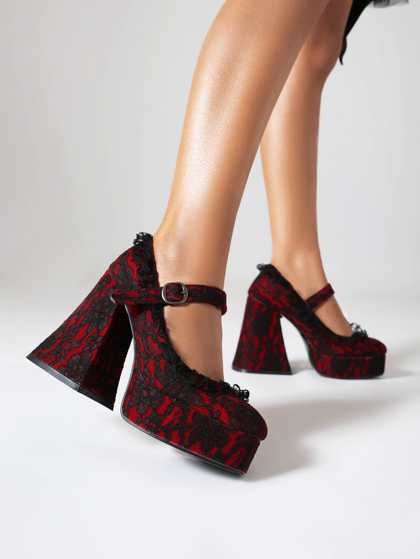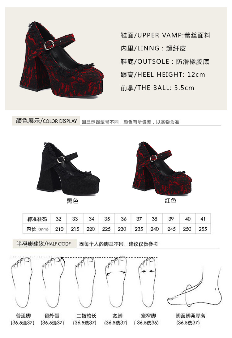 2024 크로스 보더 버클 플랫폼 하이힐 우아한 LO 신발 두꺼운 밑창 레이스로 덮인 Mary Jane 로우 컷 신발스토어 가기
