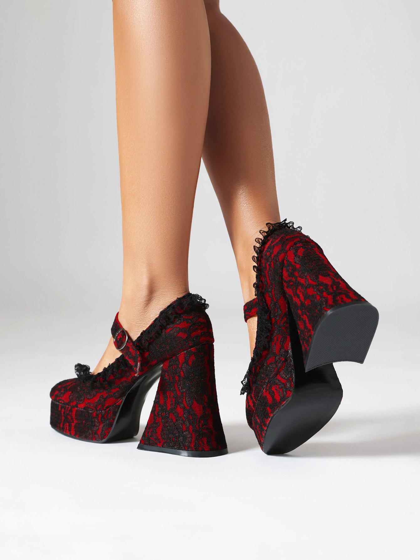 2024 크로스 보더 버클 플랫폼 하이힐 우아한 LO 신발 두꺼운 밑창 레이스로 덮인 Mary Jane 로우 컷 신발