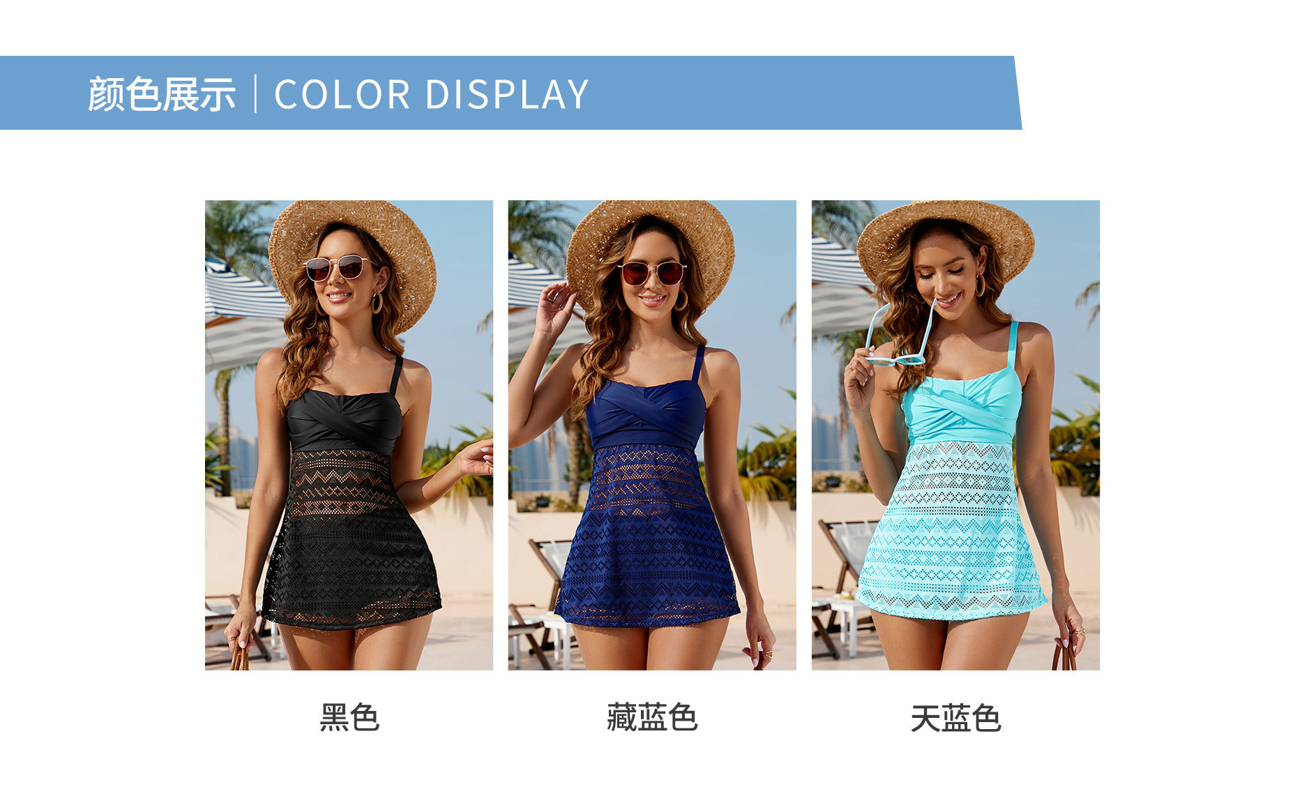 2024 새로운 재고 도매 유럽과 미국의 높은 허리 플러스 사이즈 분할 메쉬 수영복 여성의 보수적 인 배 덮개 스커트 수영복