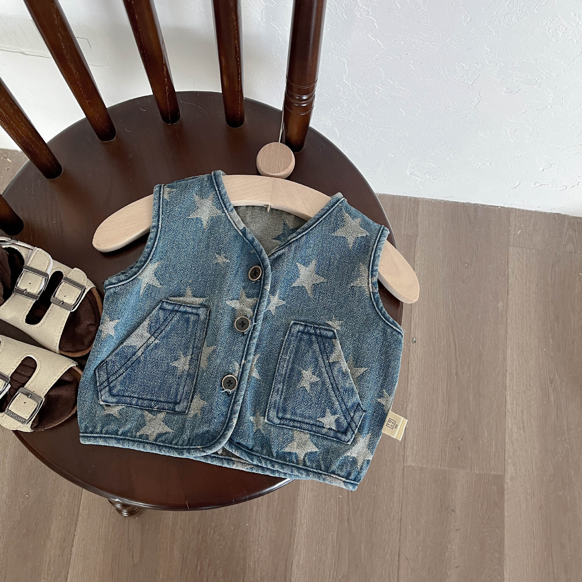 Ins 아동복 온라인 유명 인사 소년 소녀 스타 조끼 봄과 가을 나들이 아기 캐주얼 올 매칭 데님 양복 조끼스토어 가기