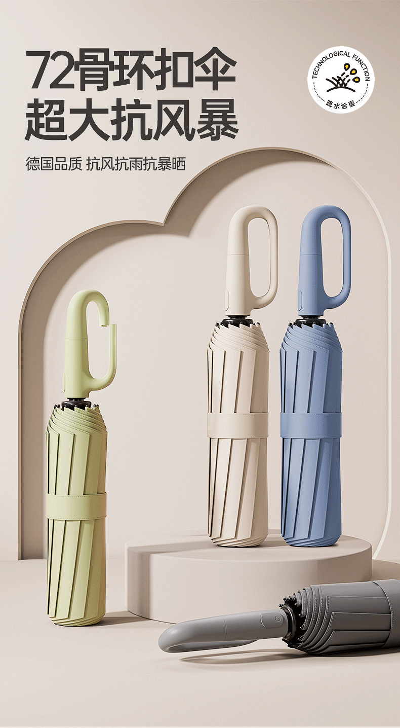 72 완전 자동 링 버클 우산 휴대용 대형 맞춤형 도매 남성 후크 접이식 이중 목적 여성 스페셜