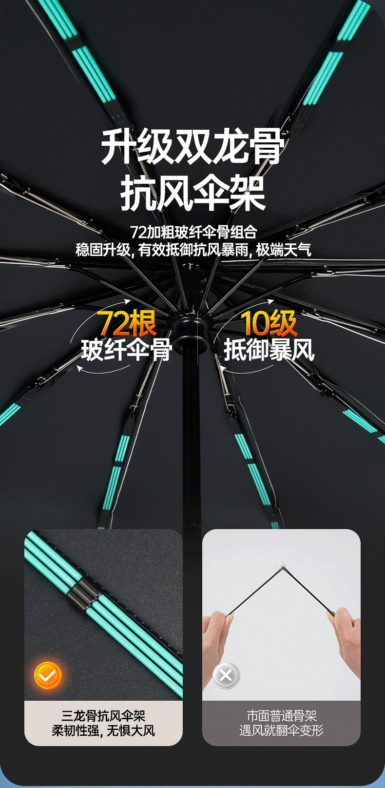 • [방풍 대형 모델] 40본 자동 [10×4 이중 섹션 이중 뼈] 비가 오나 눈이 오나 사용 가능 - 흑요석 블랙