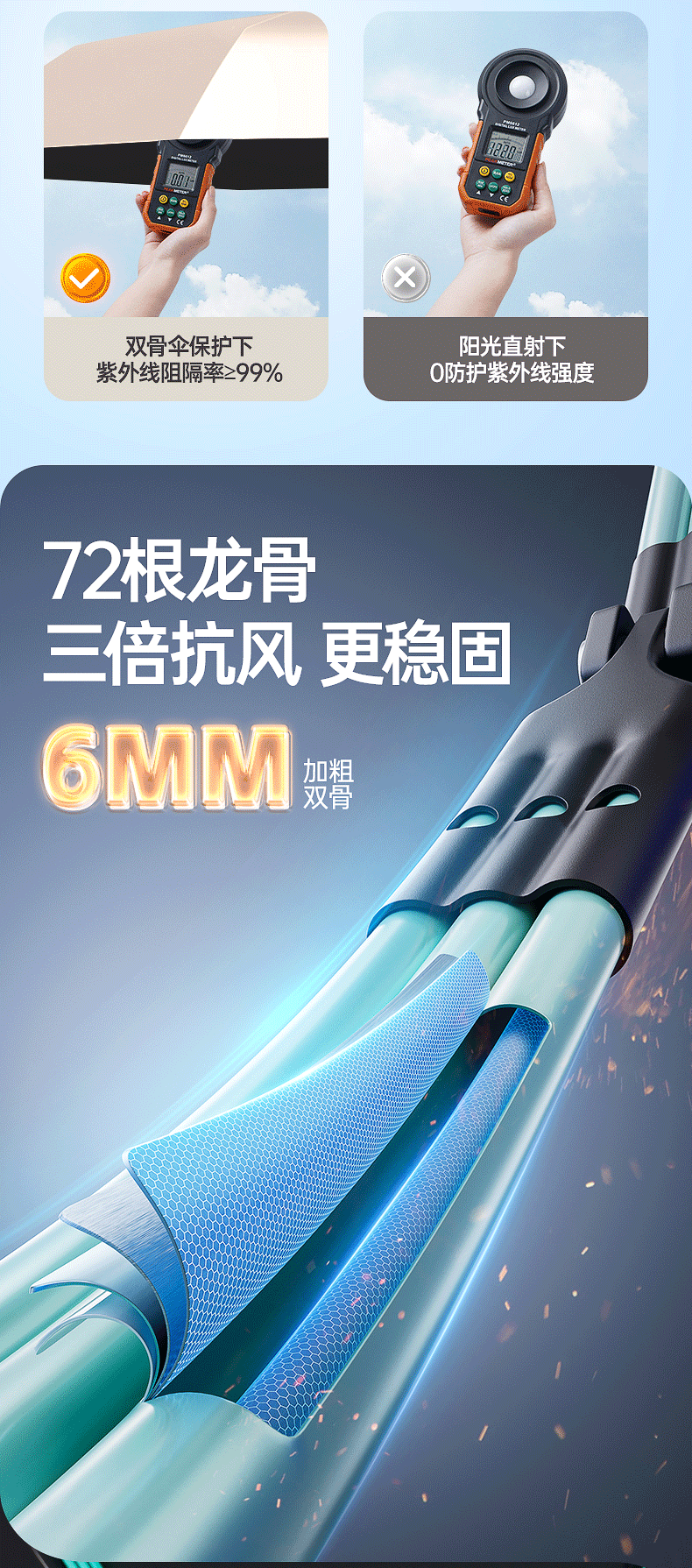 • [방풍 대형 모델] 40본 자동 [10×4 이중 섹션 이중 뼈] 비가 오나 눈이 오나 사용 가능 - 헤이즈 블루