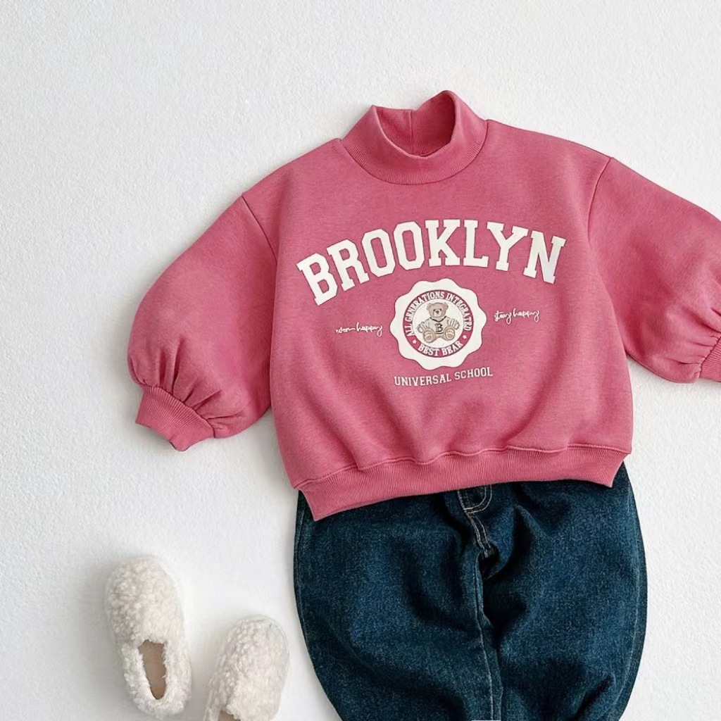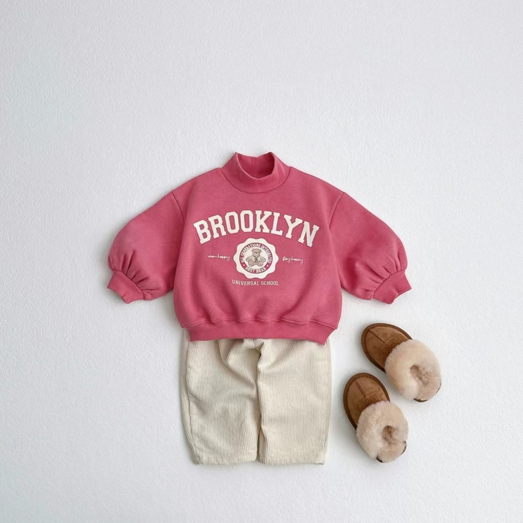 한국판 25 아기용 스탠드 칼라 레터링 스웨트셔츠와 나팔바지 캐주얼 가을 겨울 세트스토어 가기