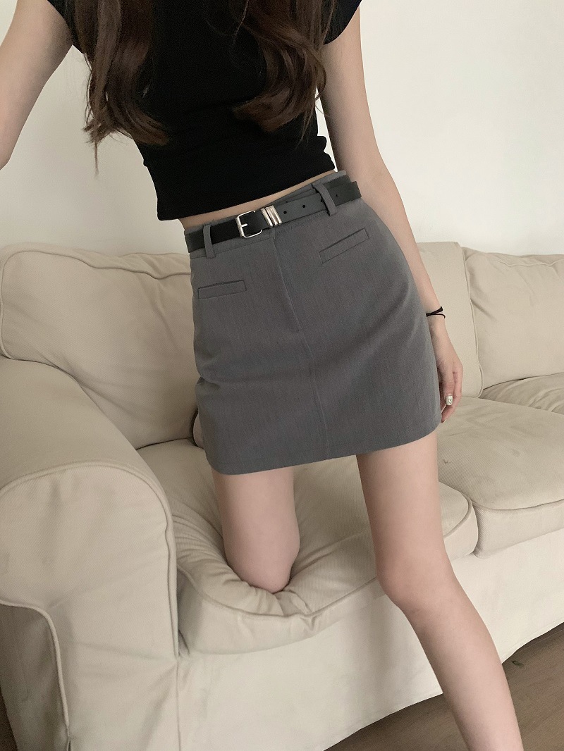 다크 그레이 A 라인 세트 스커트 봄과 가을 클래식 다목적 우아한 세트 스커트 높은 허리 슬리밍 스커트